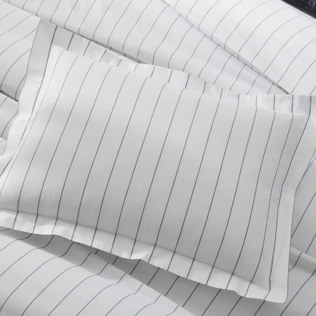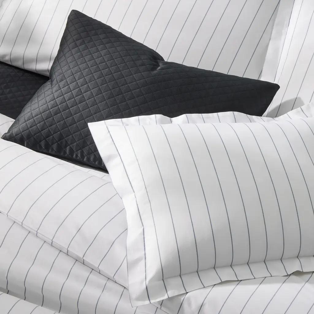 This ultra-soft bedding by Matouk features a crisp pinstripe design crafted from long-staple cotton percale for a refined, enduring quality. The Amalfi collection is versatile enough for effortless mix-and-match styling.