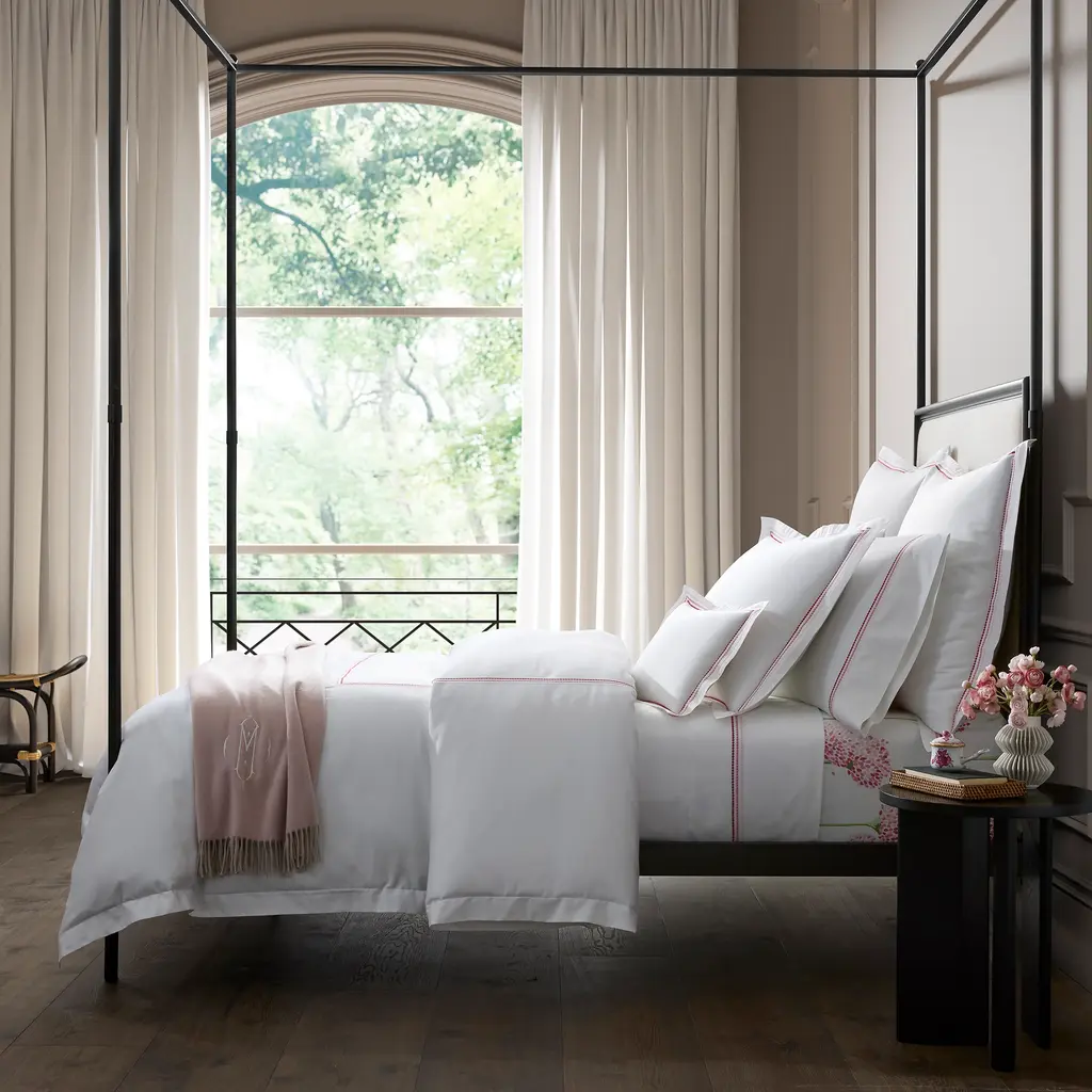 Matouk's Amara Triple Pearl is a delicate embroidered design featuring a trio of pearl-shaped strands in ombré shades. The triple pearl motif lends a creative touch to lustrous Amara sateen fabric.