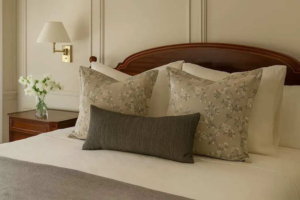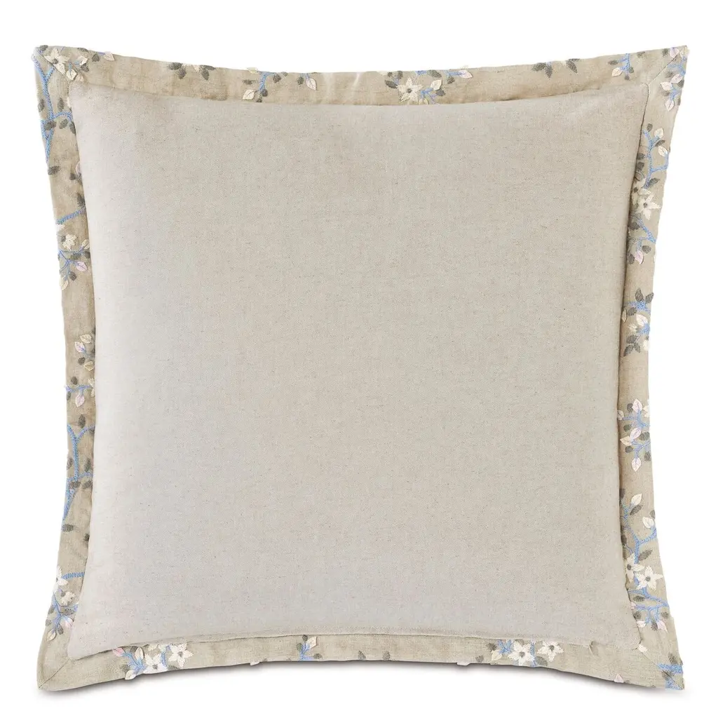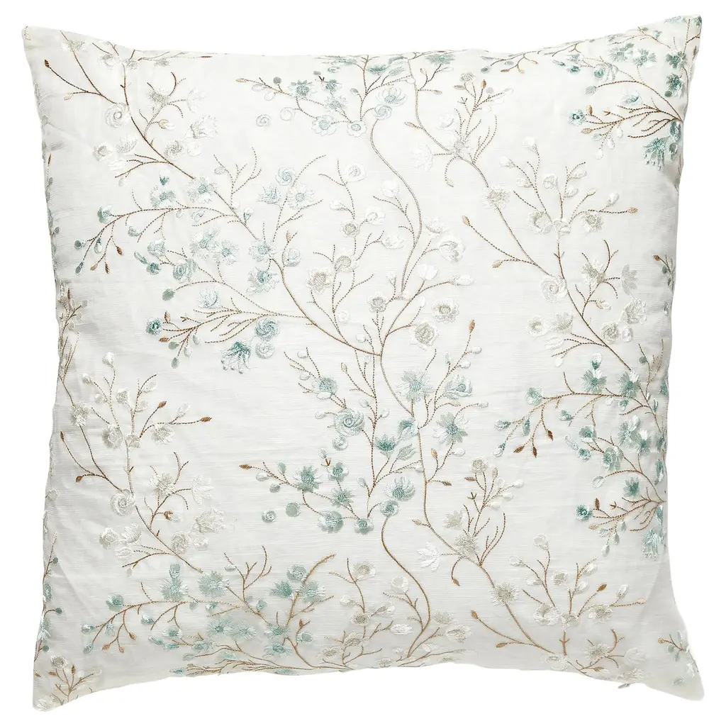 The embroidered floral motif that adorns the front and flange of this Euro sham will bring a bespoke luxuriousness to your bed. Feather fill ensures sumptuous loftiness. Solid back. Zipper closure.