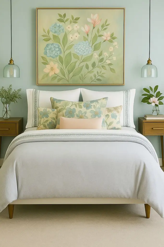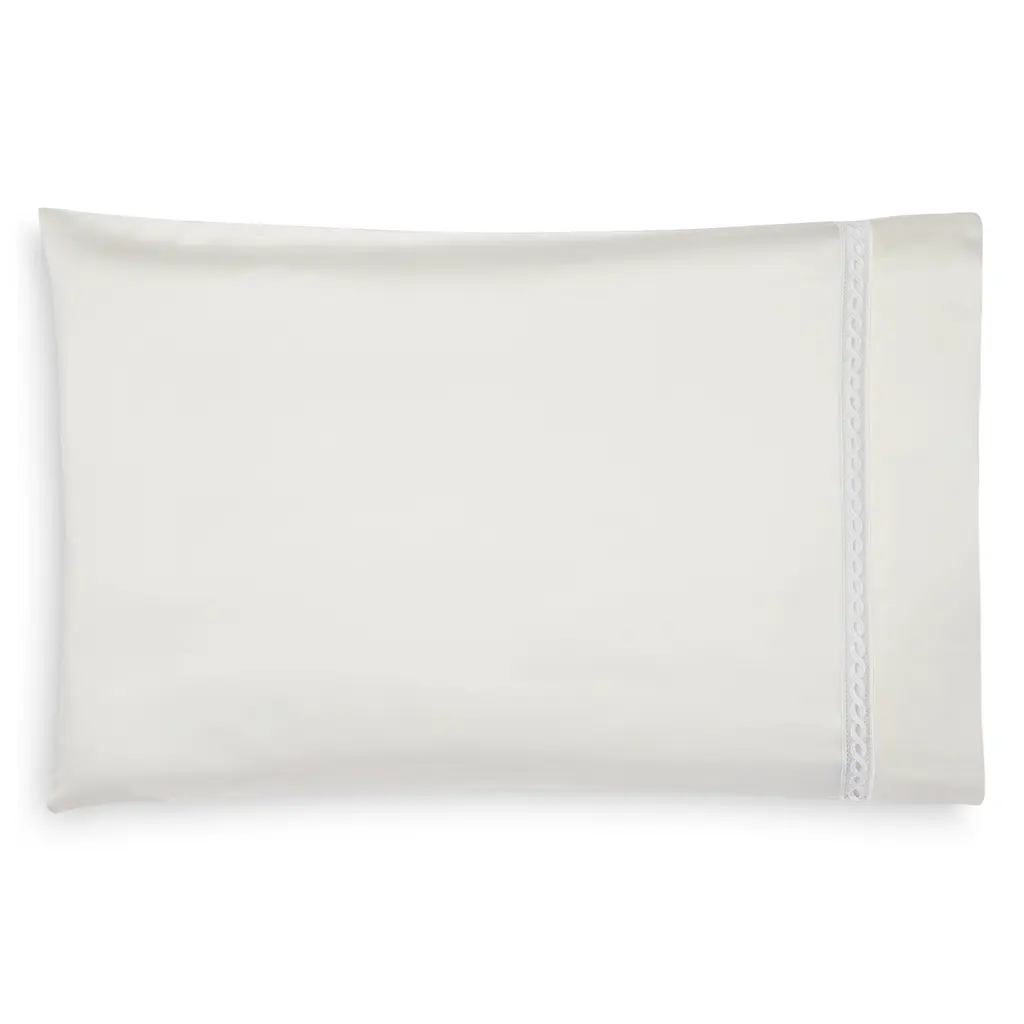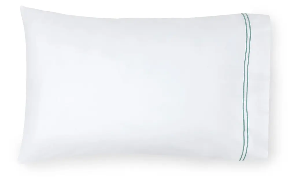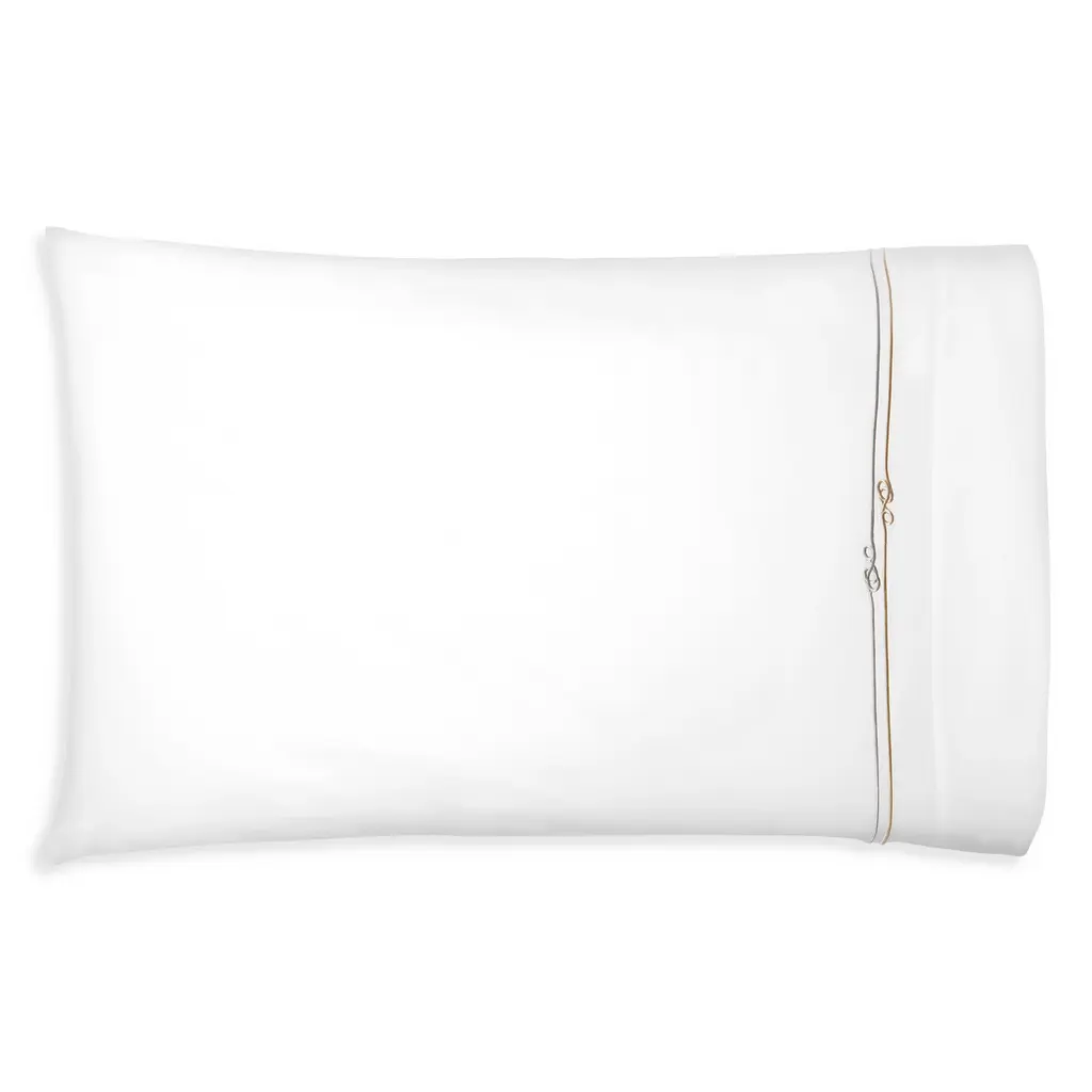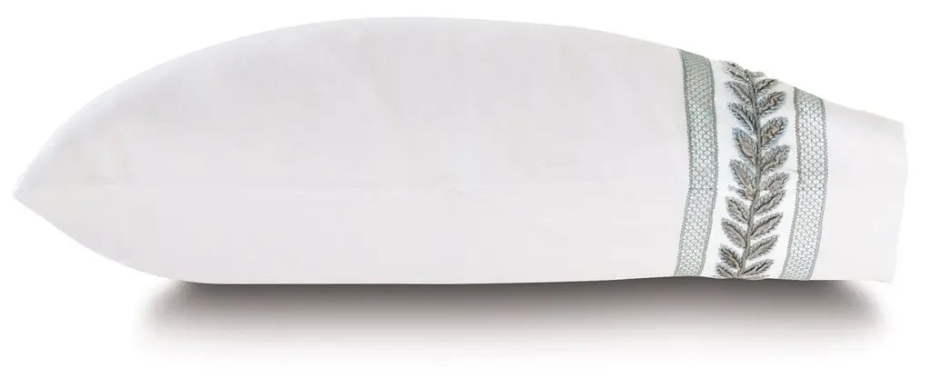 The hand-stitched leaf motif near one edge adds timeless elegance to this linen pillow sham. Feather fill ensures luxurious loftiness. Flap closure.