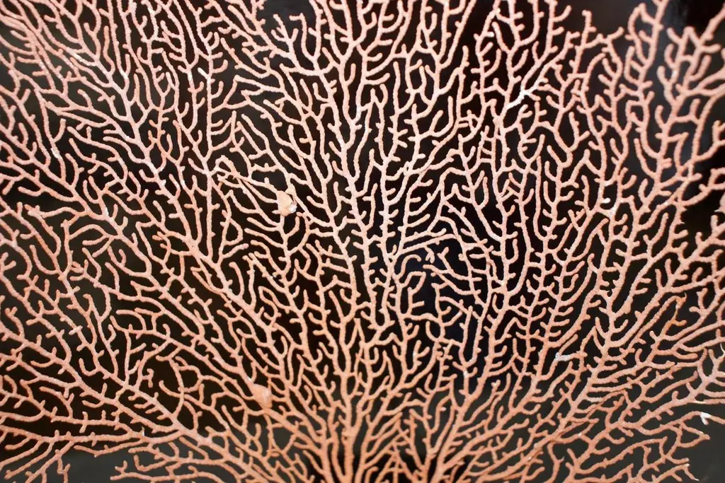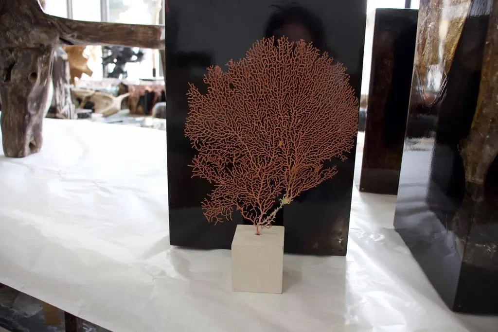 Beautiful coral fan set on a minimalist white stand. We have a collection. Great as a party gift or table setting. All one of a kind. Andrianna Shamaris. The Leader In Modern Organic Design ™