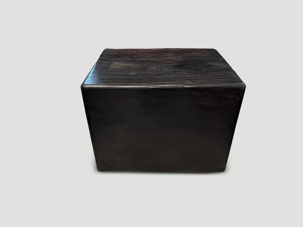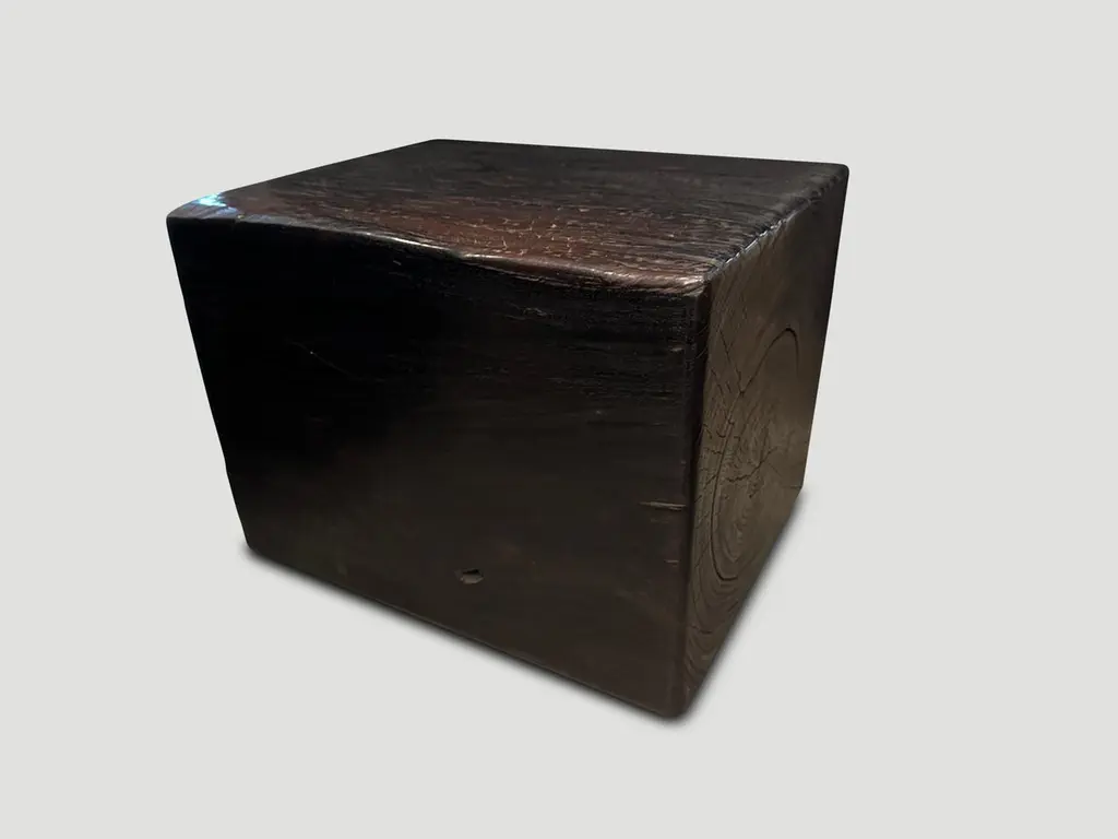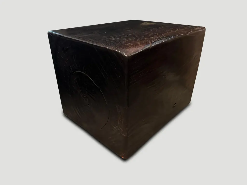 A beautiful single solid teak log, taken from my private collection is hand made to produce this one of a kind bench or side table. We added minimalist legs that allow the top to float 2.5” off the floor. Finished with a chocolate stain revealing the unique wood grain. Part of the Mid Century Couture Collection. Furniture constructed by hand from start to finish. It’s all in the details.Own an Andrianna Shamaris original.Andrianna Shamaris. The Leader In Modern Organic Design.