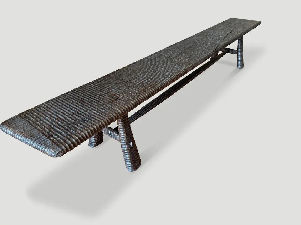 Andrianna Shamaris Impressive Minimalist Hand Carved Teak Wood Bench