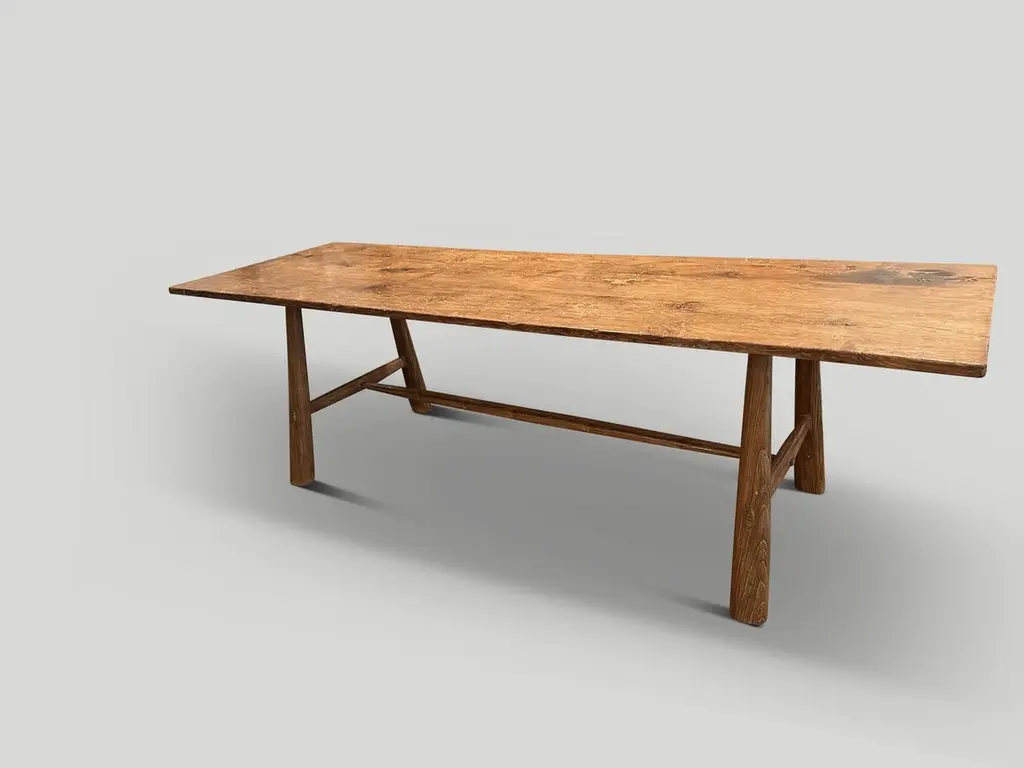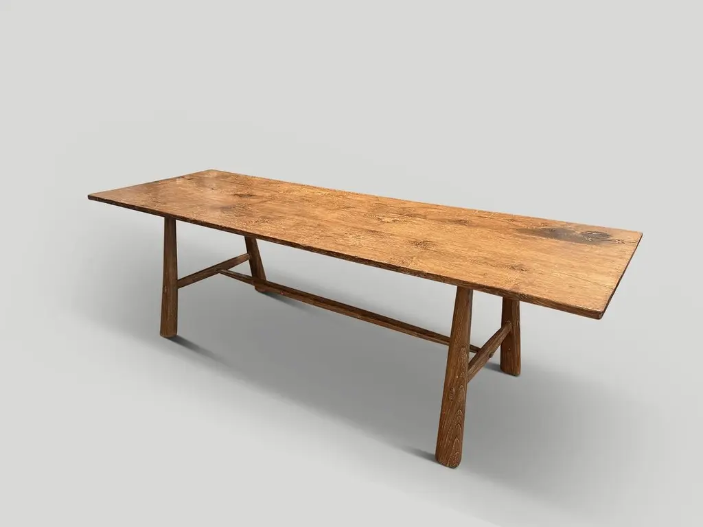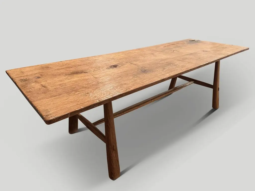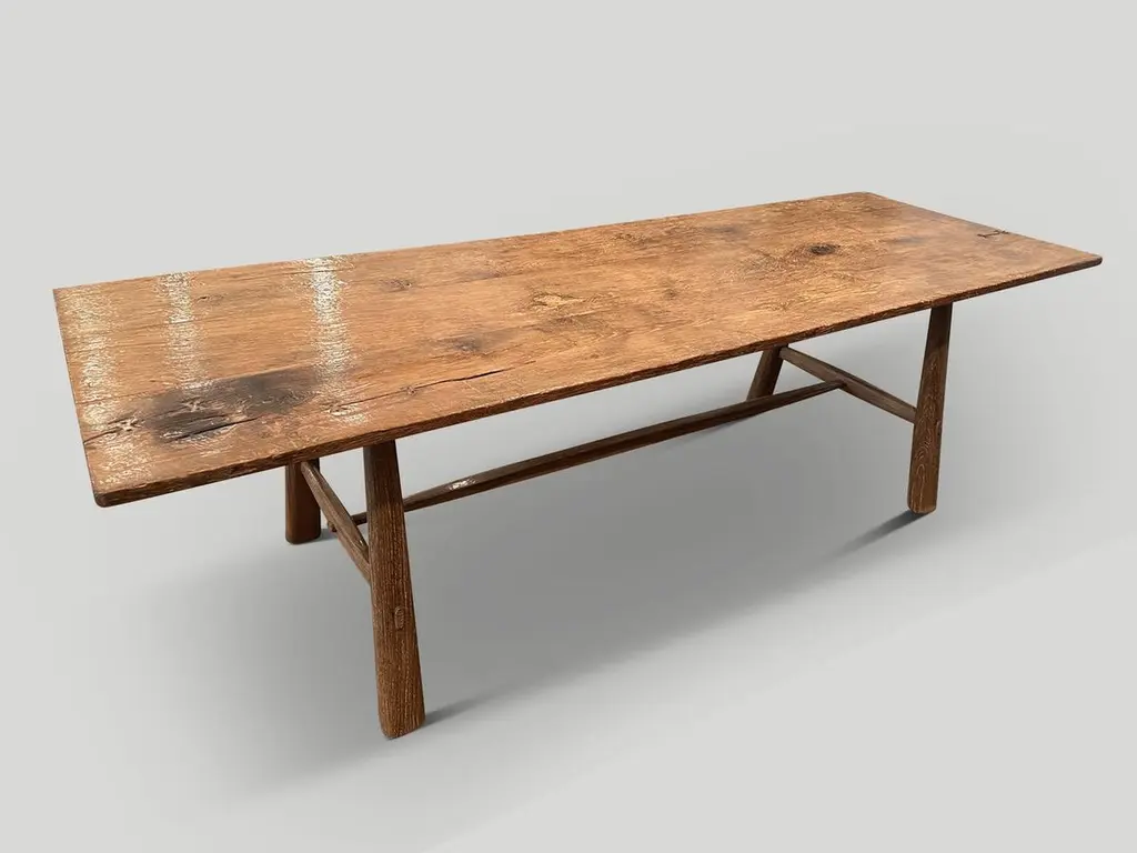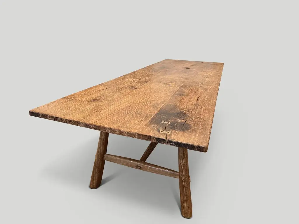 Introducing the Mid Century Couture Collection. Furniture constructed by hand from start to finish. Three beautiful reclaimed teak wood panels from my finest collection are joined together to produce a stunning dining table. We added soft rounded mid century style legs and wood butterflies inlaid into the top. Beautiful patina and grain on this century old teak. Custom sizes and finishes available. Please inquire.Own an Andrianna Shamaris original.Andrianna Shamaris. The Leader In Modern Organic Design.