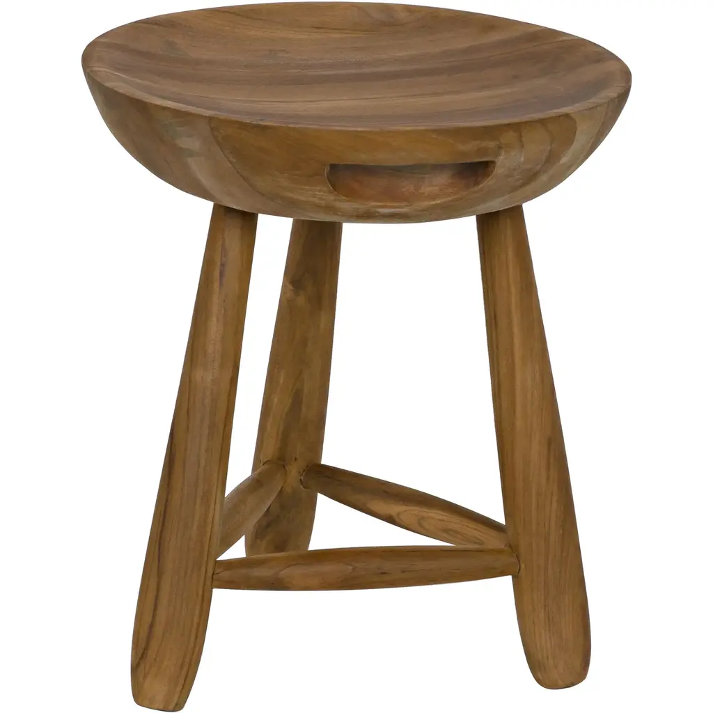 Andrianna Shamaris Minimalist Shell Inlaid Teak Round Side Table Or Pedestal