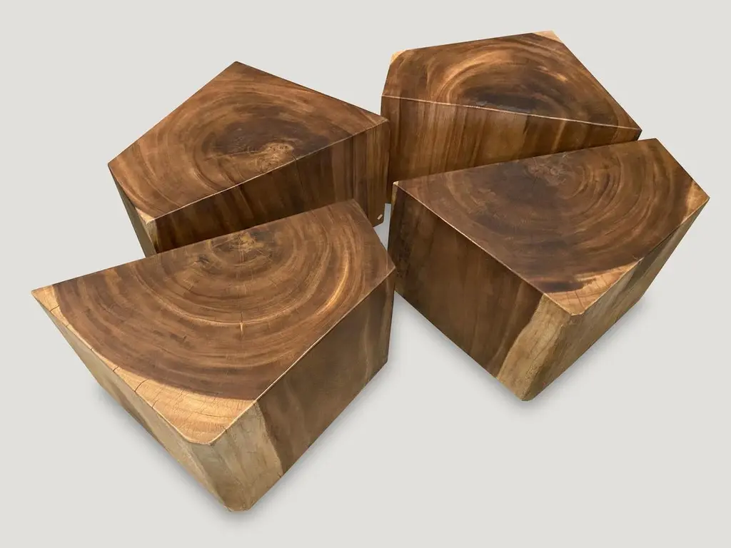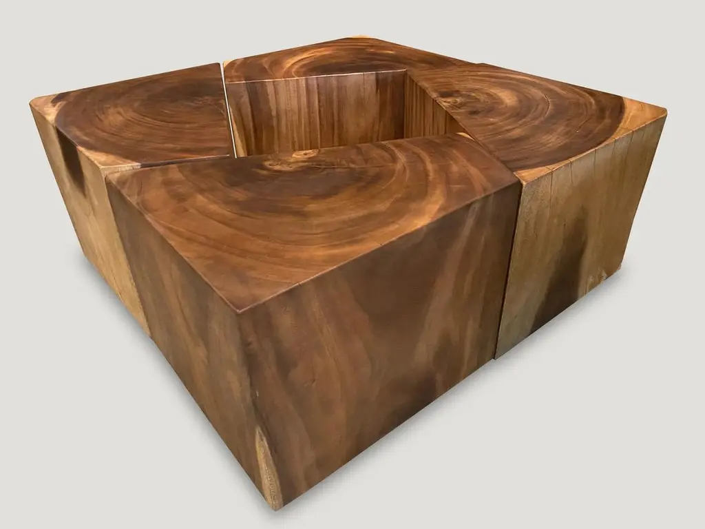 Fabulous modular coffee table with beautiful contrasting wood grain made from reclaimed suar wood. These can also be used as side tables which measure: 23" long x 9-19" wide x 15" high.Sold as a set of four.Andrianna Shamaris. The Leader In Modern Organic Design.