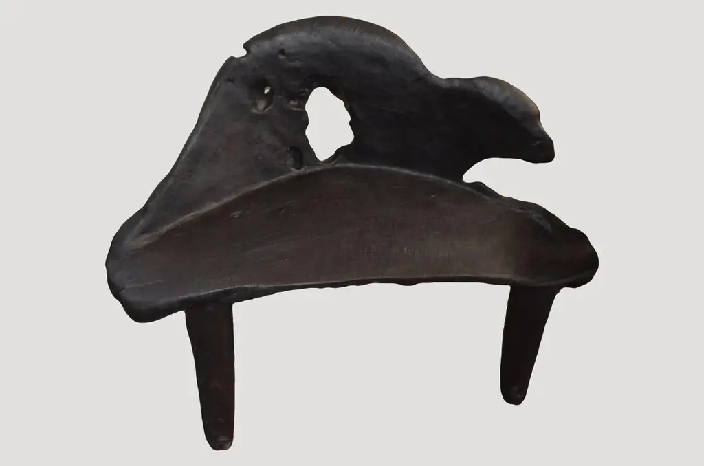 Sculptural reclaimed teak root bench. Charred, sanded and sealed revealing the beautiful wood grain. Custom stains and finishes available. Please inquire.The Triple Burnt Collection represents a unique line of modern furniture made from solid organic wood. Burnt three times to produce a rich, charcoal finish with impressive depth-a result unachievable using standard stains and finishes. A perfect combination of modern and organic.Own an Andrianna Shamaris original.Andrianna Shamaris. The Leader In Modern Organic Design™