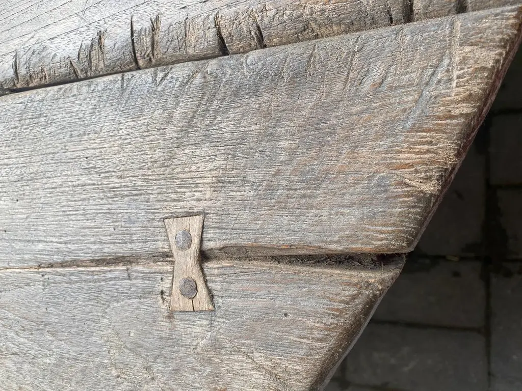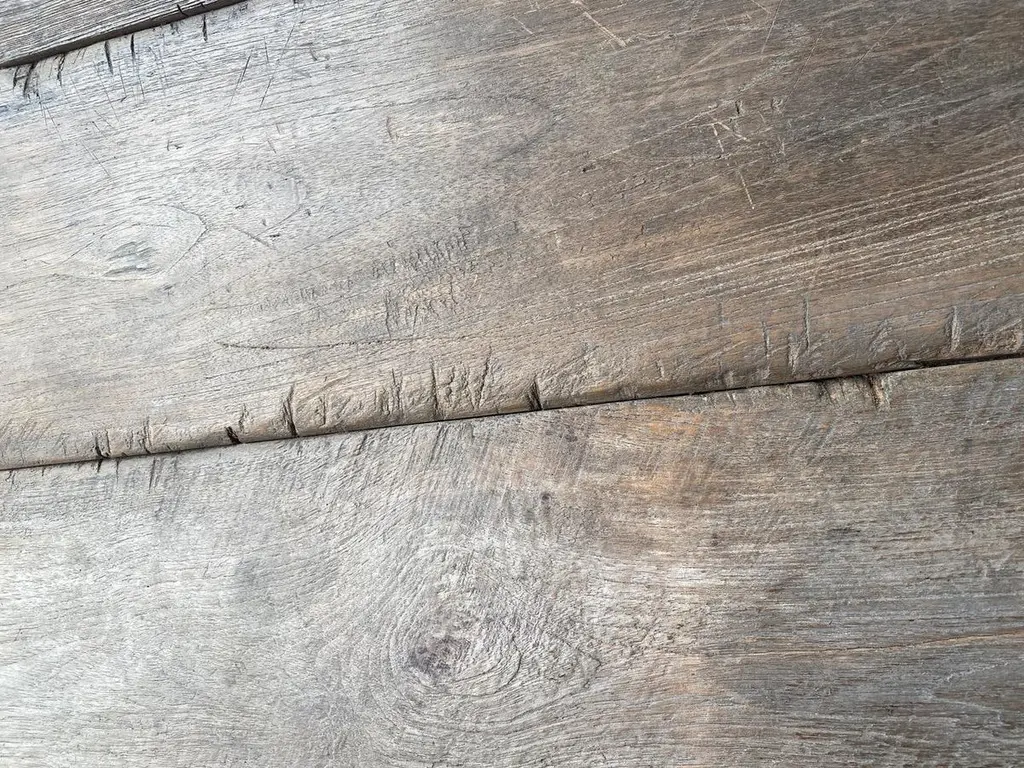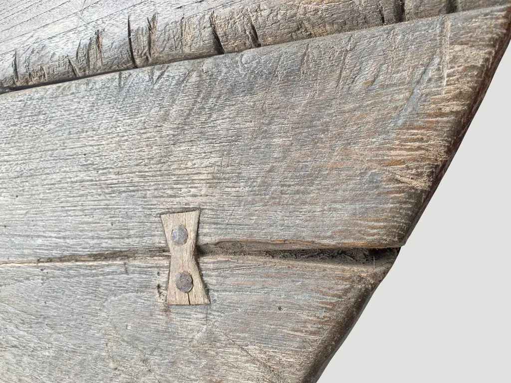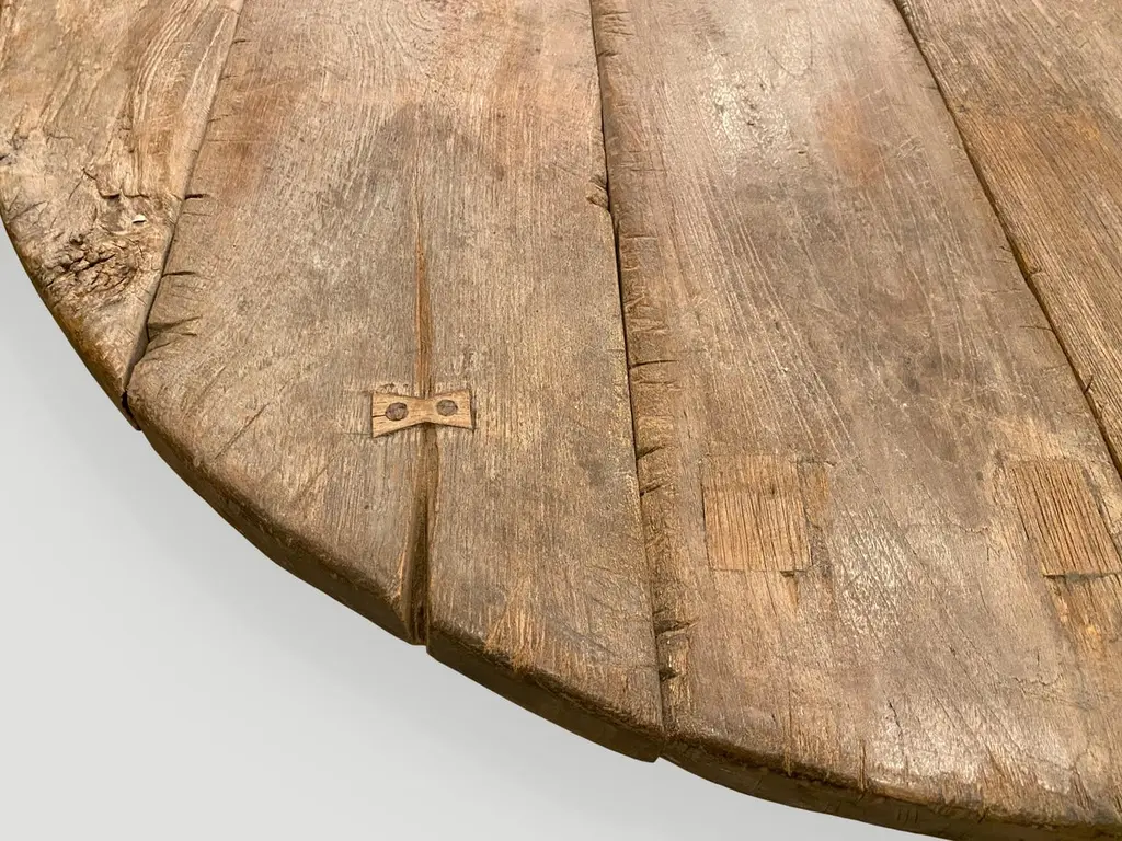 Beautiful aged teak wood panels joined together with lovely patina and soft rounded edges. Celebrating the cracks and crevices and all the other marks that time and loving use have left behind. We added butterflies inlaid into the wood and a smooth teak mid century style base in contrast. Newly made out of old wood. Custom sizes available. Please inquire. This coffee table was handmade in the spirit of Wabi-Sabi, a Japanese philosophy that beauty can be found in imperfection and impermanence. It is a beauty of things modest and humble. A beauty of things unconventional. It is the opposite of vulgarity. The costs of achieving this kind of minimalism are seemingly inconsistent with its mission of aesthetic humility. This kind of luxury is for a select few: The Emperor of Japan had a Wabi garden. Wabi is for people who already have a lot.Own an Andrianna Shamaris original.Andrianna Shamaris. The Leader In Modern Organic Design.