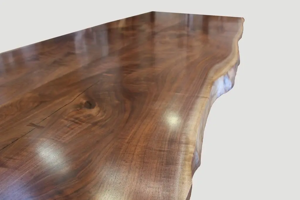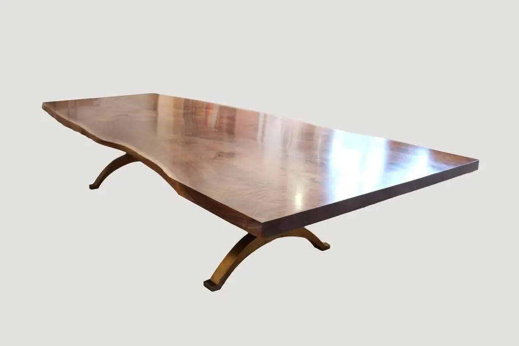 Hand made live edge walnut dining table with a bronze base. The price shown reflects a 120" x 40" wide walnut top with a bronze base. We can custom the base and top in any style, stain or size. Please inquire. All slabs are hand selected. We only select the best. Lead time 12-14 weeks.Own an Andrianna Shamaris Original.Andrianna Shamaris. The Leader In Modern Organic Design™