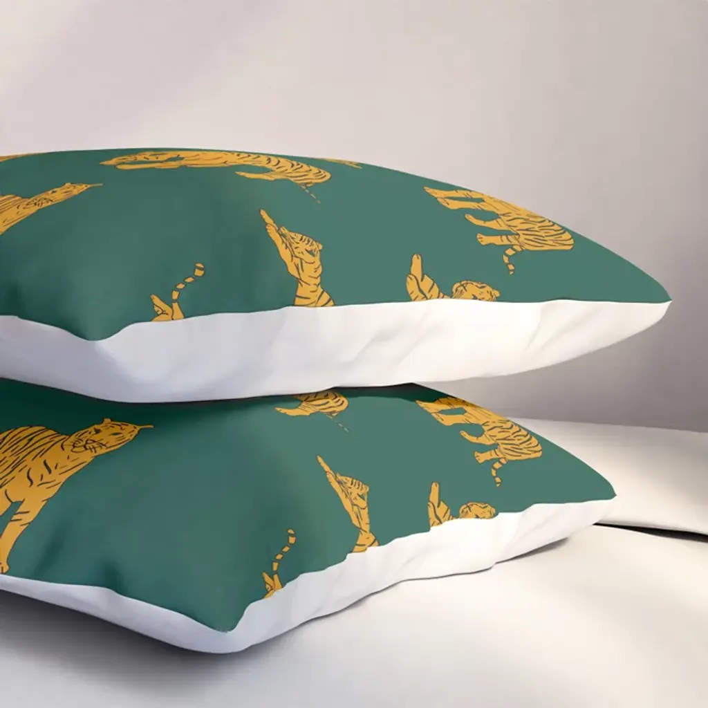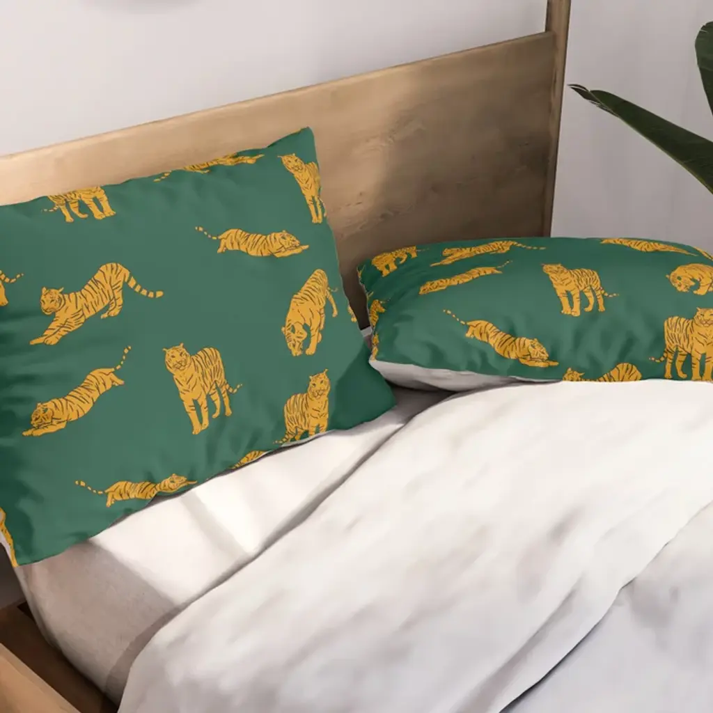 Animal Print - Tigers On Dark Olive Green Retro Texture Pillow Sham