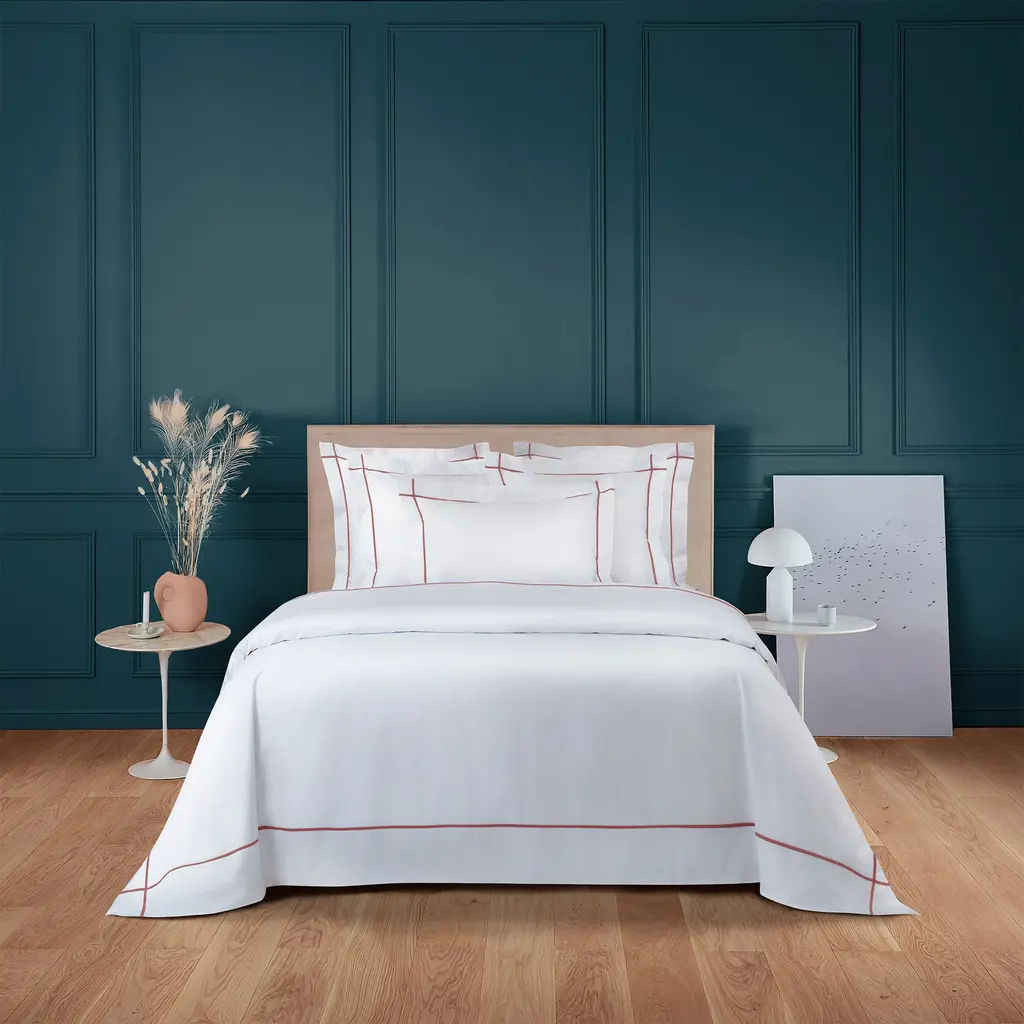 Recognized for its prints and timeless classics, Yves Delorme crafts luxury bedding that embodies the French lifestyle. Yves Delorme's exquisite collections are distinguished by their uncompromising quality and meticulous attention to detail. Classic and elegant, the Athena bedding collection from Yves Delorme features a simple embroidered border against crisp, white 500-thread count cotton percale.