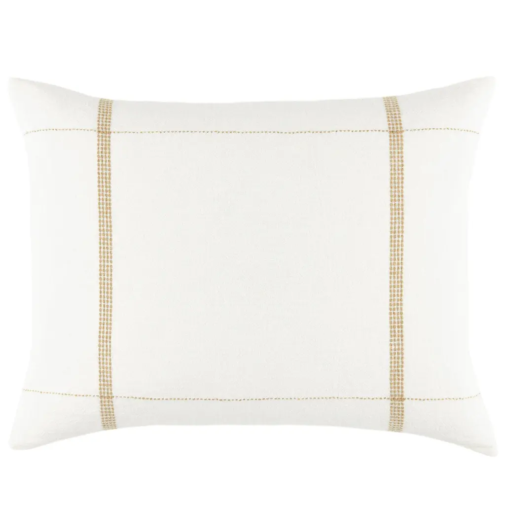 Inspired by antique homespun grain sacks, the Atherton Shams boasts large windowpane checking that will add a modern farmhouse aesthetic to any decor. Subtly engineered to resemble hand stitching, the heirloom flaxen quality softens with every wash, with very little wrinkling, and is made to last a lifetime.