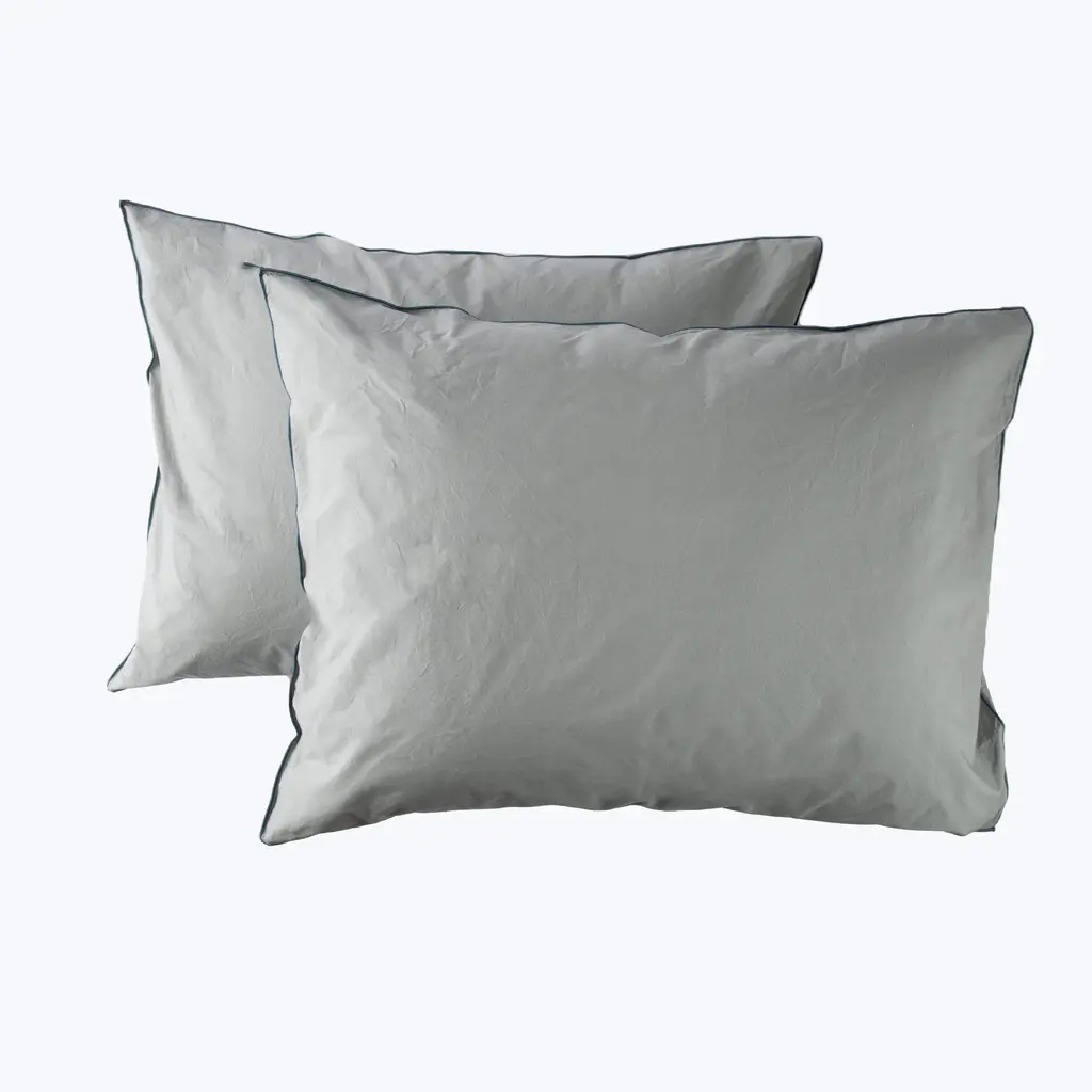 Surround yourself with a soft and airy feel for a restful night's sleep with the abcDNA Aura Duvet + Shams in Moonflower. This duvet cover and pillow shams are created using a crisp, comfortable percale weave and 200 TC washed cotton resulting in breathable and non-toxic bedding. The Aura collection features balanced natural hues with a colorful contrasting edge, inspired by radiating botanical beauty. The Aura Duvet Cover features a knife edge with mother-of-pearl closure. The Aura Sham Pair features a contrasting edge with an envelope closure.