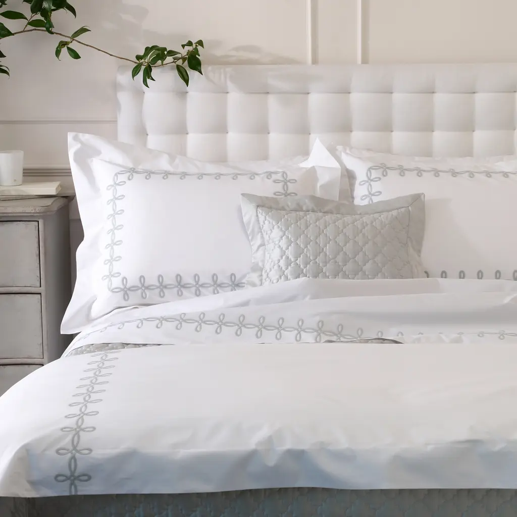 Crafted in ultra-soft 600-thread count cotton sateen, this luxurious lofty Matouk sham boasts quatrefoil stitching. Layer with solid or printed sheets for a unique look with global flair.
