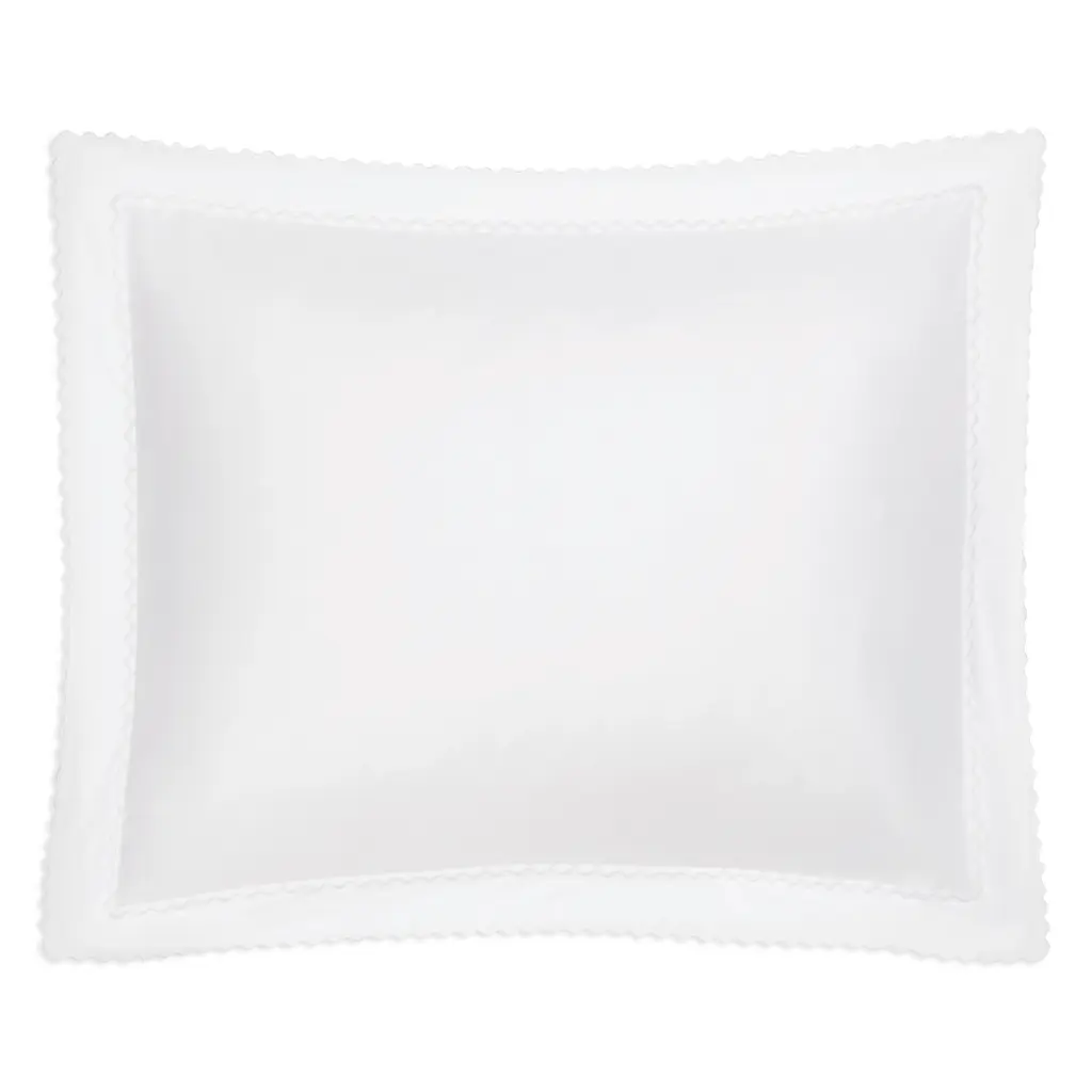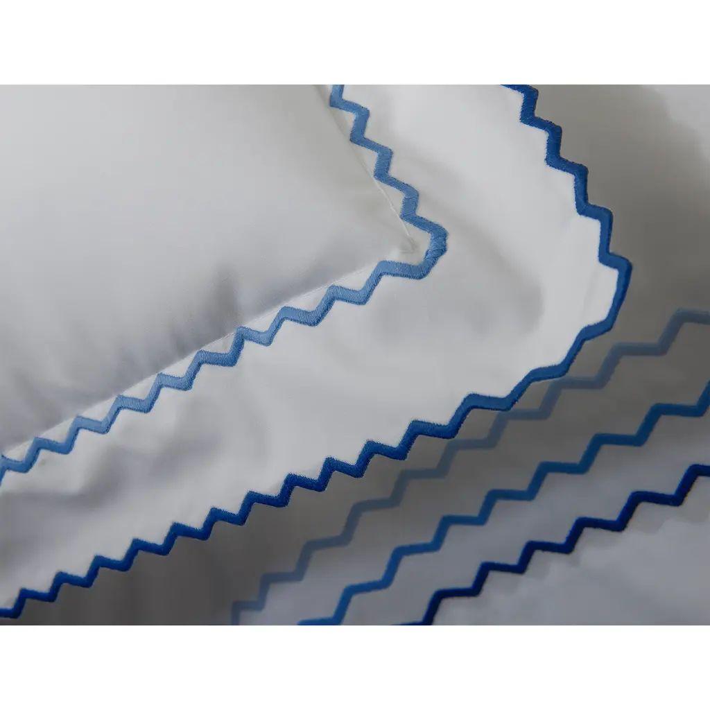 Axel is a lively offering that features playful zigzag embroidery in a variety of color combinations. Woven from long-staple cotton for an exceptionally soft hand, Axel lends a spirited energy to the modern bed with its graphic stitched trim. Pair Matouk's Axel bed linens with the matching Sierra fitted sheet.