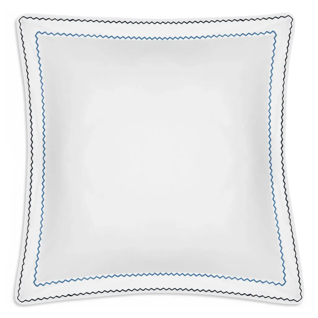 Axel is a lively offering that features playful zigzag embroidery in a variety of color combinations. Woven from long-staple cotton for an exceptionally soft hand, Axel lends a spirited energy to the modern bed with its graphic stitched trim. Pair Matouk's Axel bed linens with the matching Sierra fitted sheet.