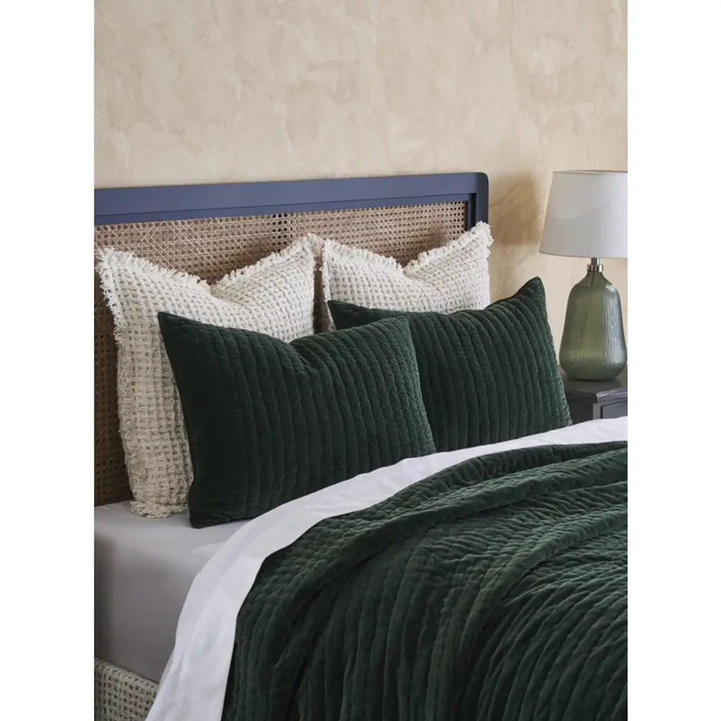Yards of cotton velvet is hand quilted creating a collection that can nearly cover all the bases. Let it lean minimalist with a restrained palette, or use it to add layers of sophisticated texture when crafting a sensational set for that cabin, farmhouse, or modern abode.