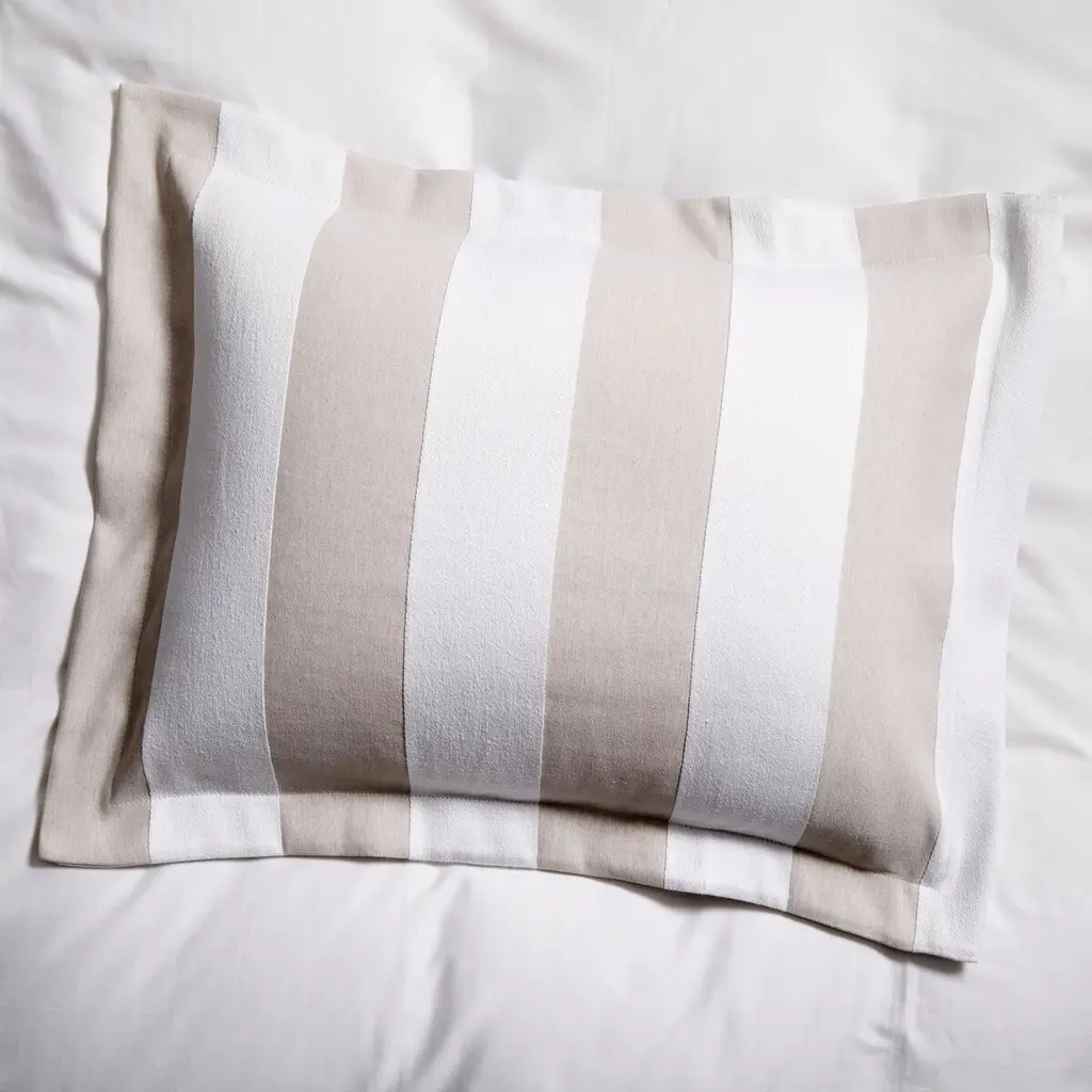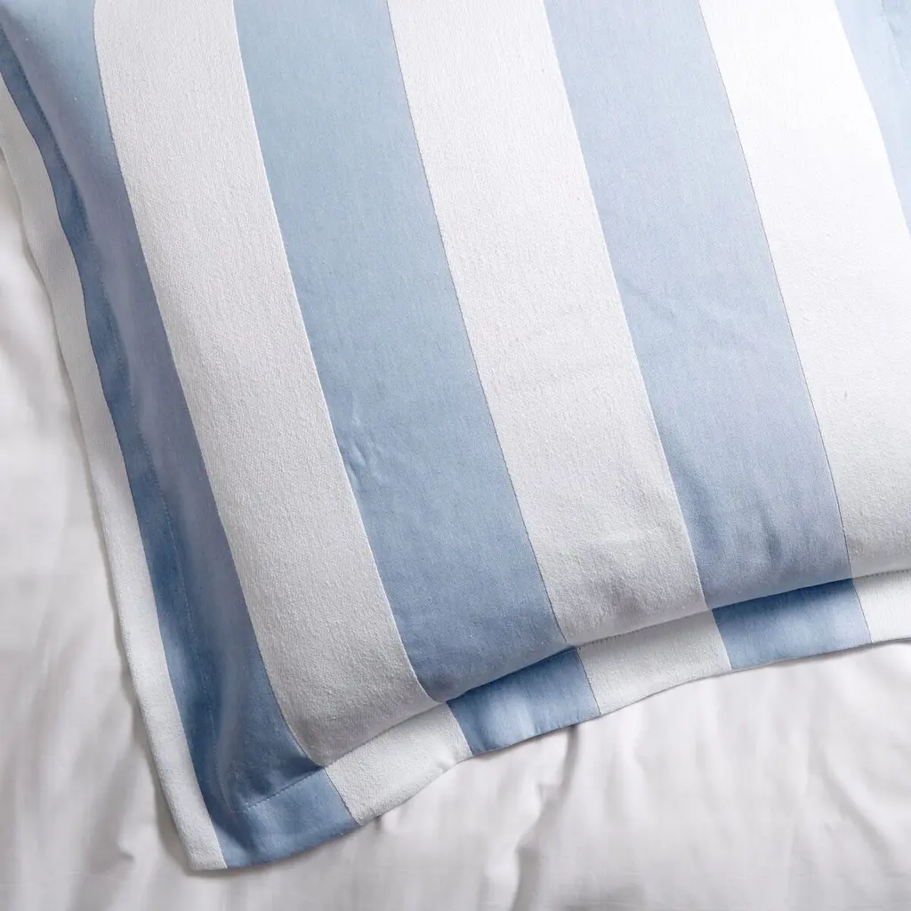 Accented with blue-and-white cabana stripes, this cotton-blend sham adds casual elegance to any bed.