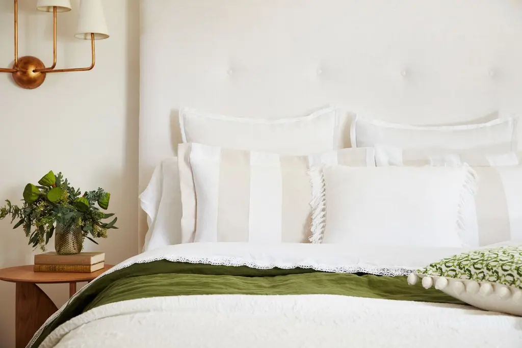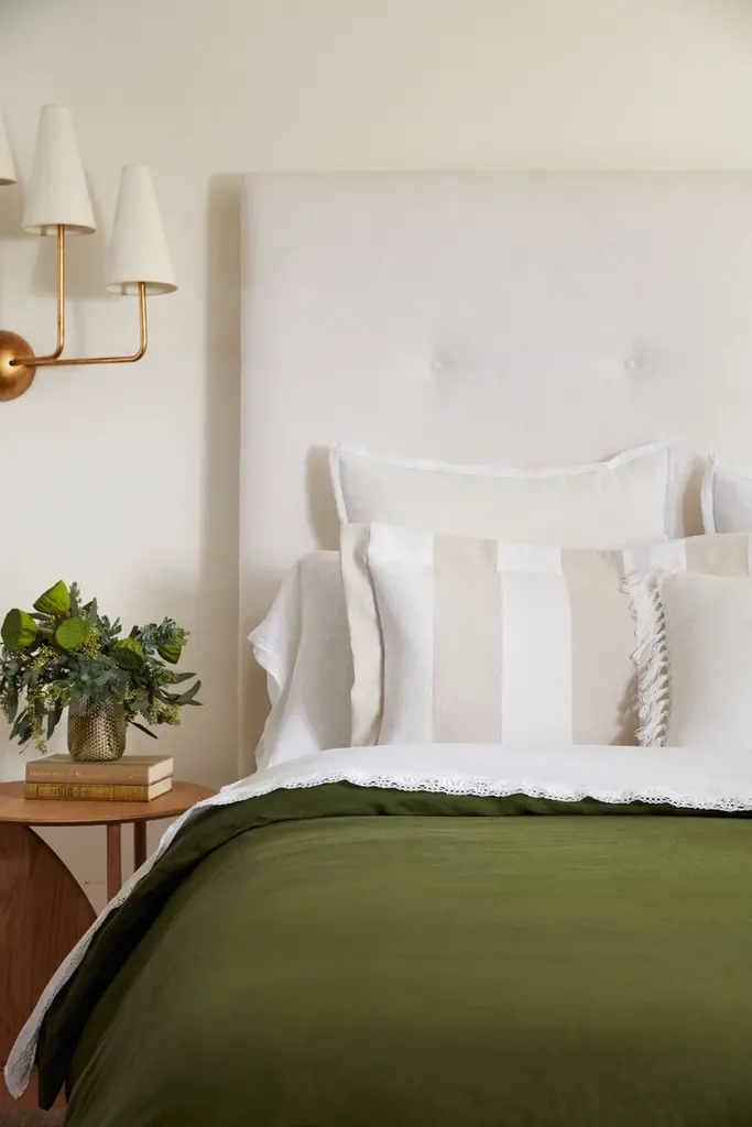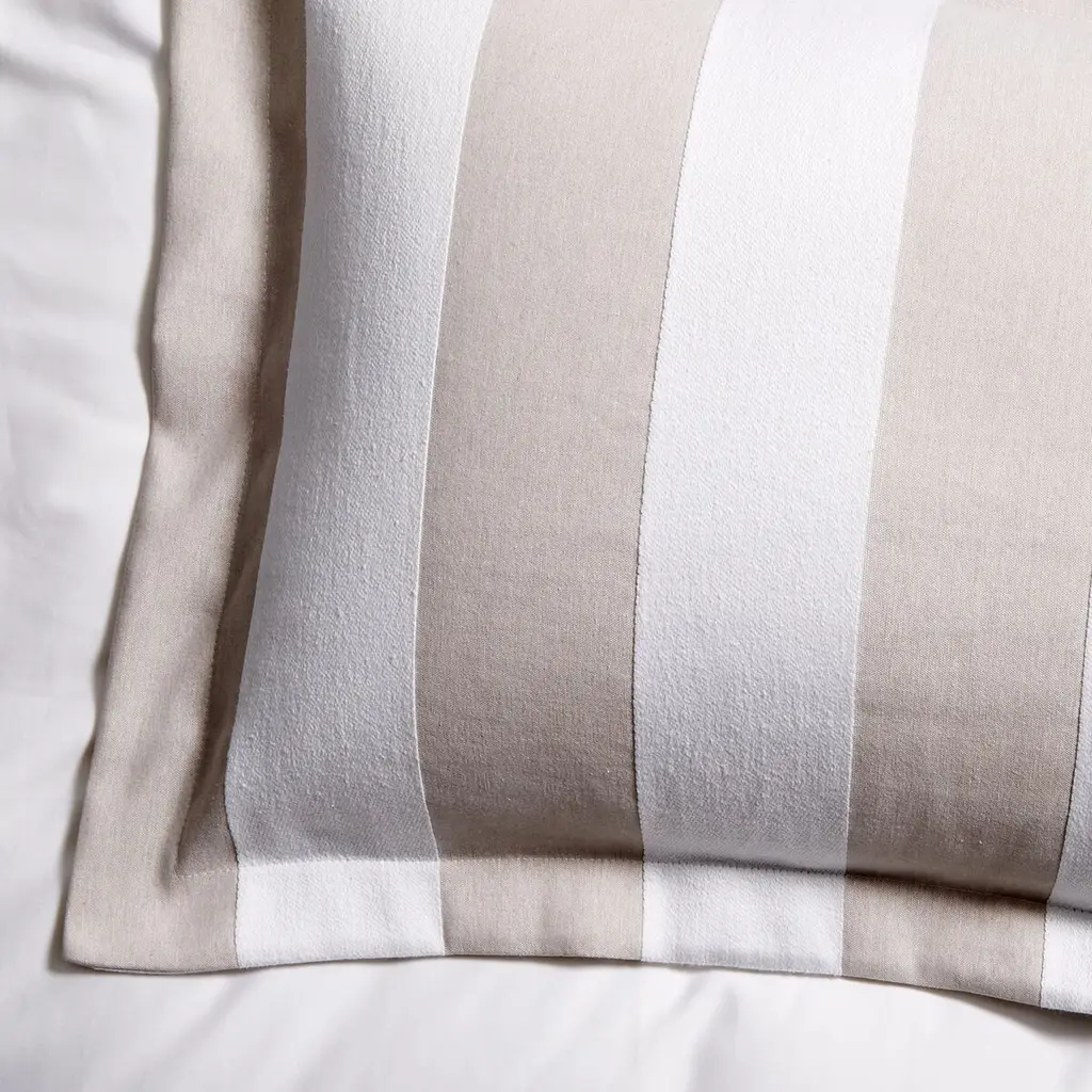 Accented with taupe-and-white cabana stripes, this cotton-blend sham adds casual elegance to any bed.