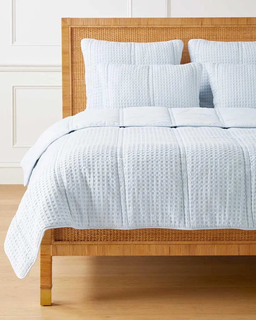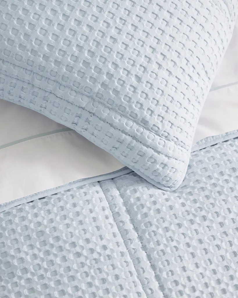 A textured waffle weave and cozy fill offer lasting warmth. Machine washable.