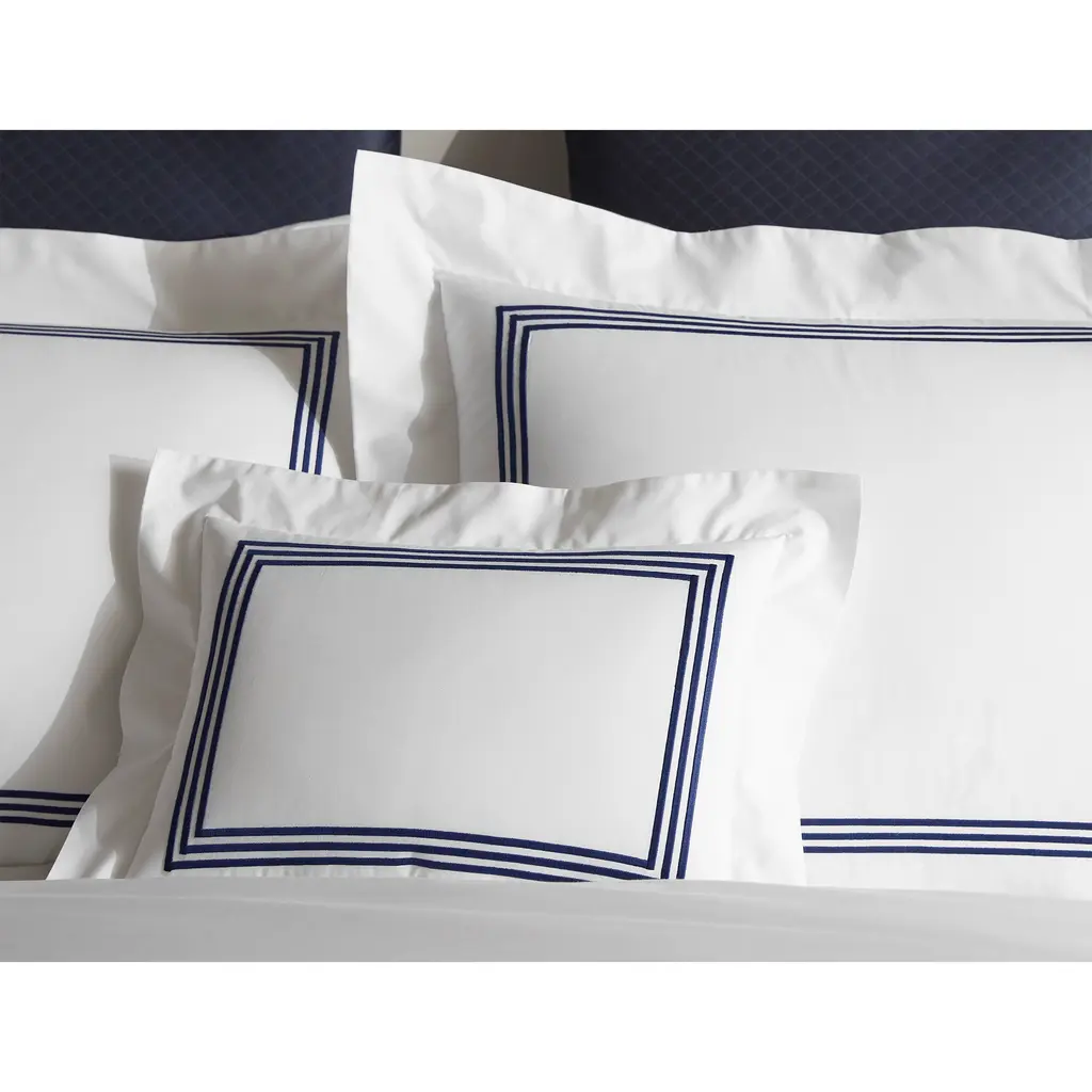 Inspired by classic hotel beds, the Bel Tempo Collection captures the essence of serenity in the form of three embroidered stripes on crisp, 520-thread count Ceylon percale. The result is a look that blends a contemporary appeal with heritage design. Pair Matouk's Bel Tempo bed linens with the matching Ceylon fitted sheet.