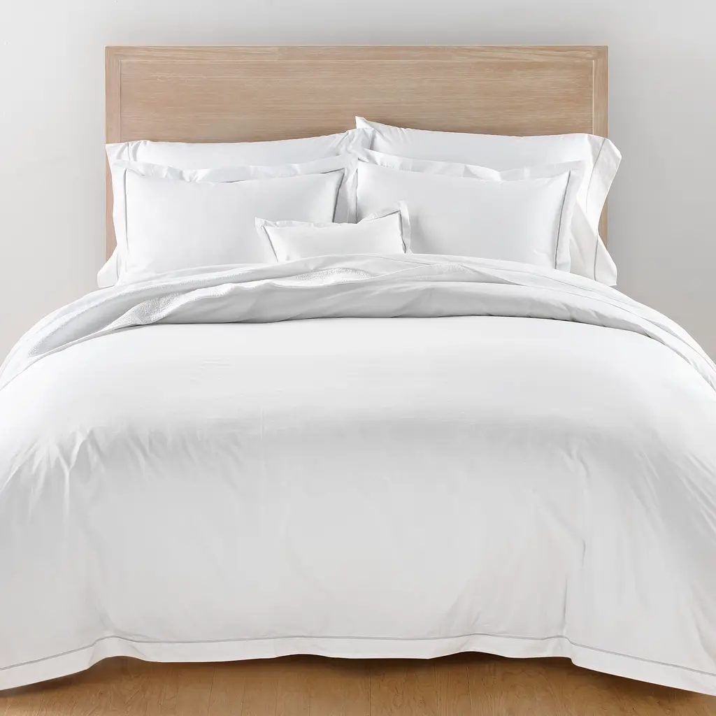 Woven it Italy, Matouk's Bergamo Bedding Collection is a phenomenal new percale, the silkiest and lightest in Matouk's collection. Featuring extra-long staple 100% Giza Egyptian cotton yarns, this 500-thread count bedding is finished with a unique process that creates a smooth and heavenly feel while still maintaining the crispness of percale. Matouk's Fall River factory completes the sheeting with a thick satin stitch and broad flange.