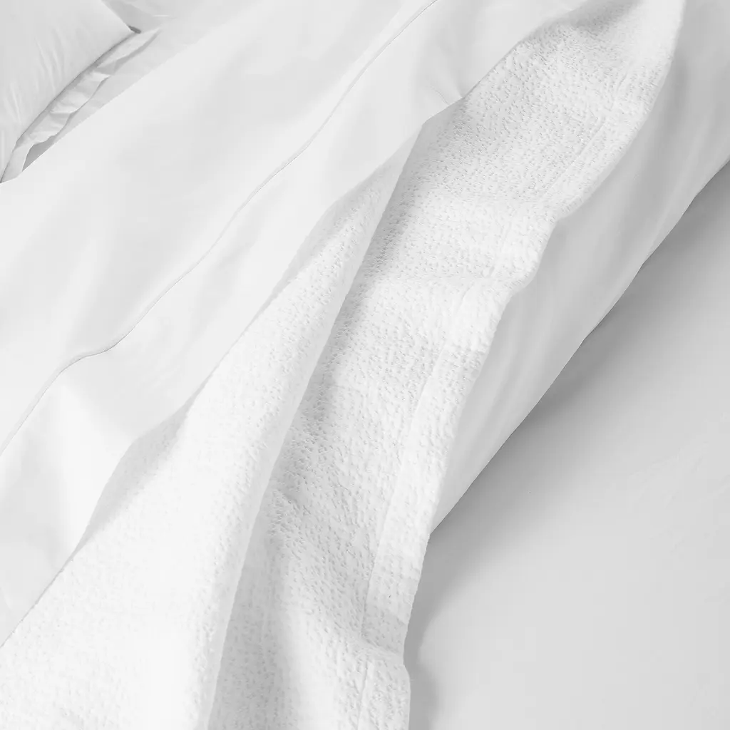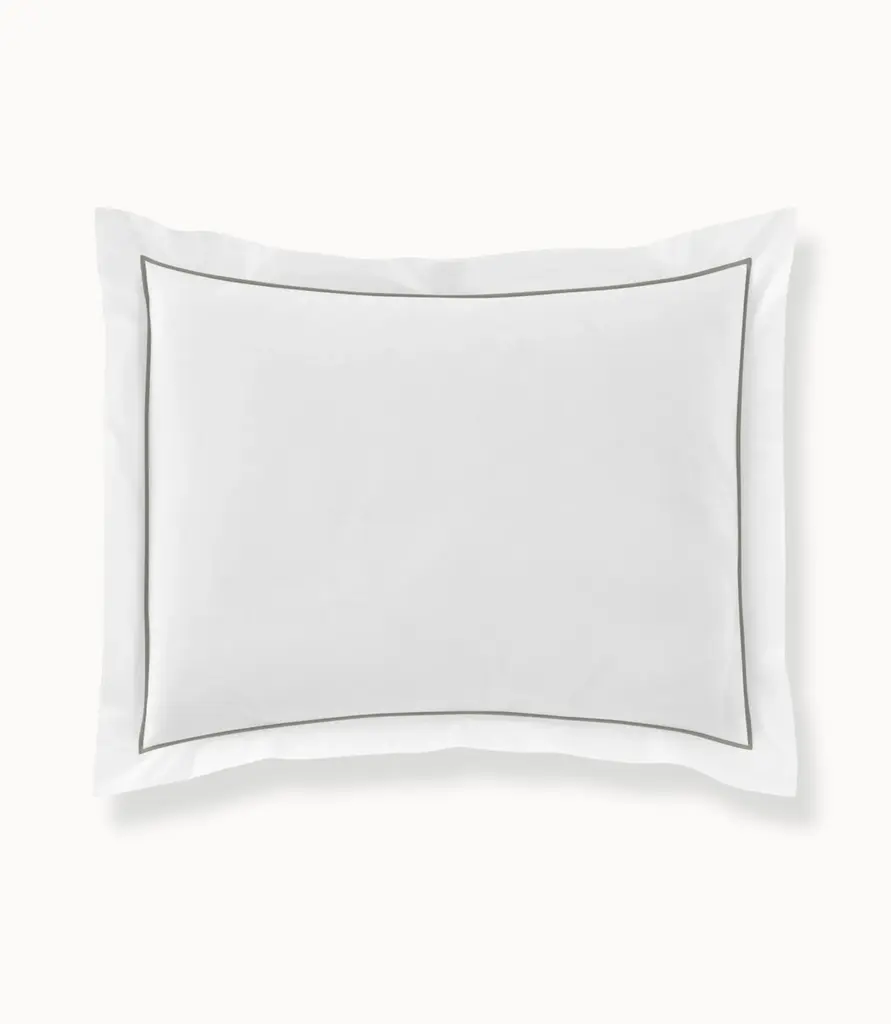 Woven it Italy, Matouk's Bergamo Bedding Collection is a phenomenal new percale, the silkiest and lightest in Matouk's collection. Featuring extra-long staple 100% Giza Egyptian cotton yarns, this 500-thread count bedding is finished with a unique process that creates a smooth and heavenly feel while still maintaining the crispness of percale. Matouk's Fall River factory completes the sheeting with a thick satin stitch and broad flange.