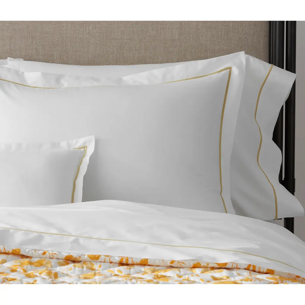 Woven it Italy, Matouk's Bergamo Bedding Collection is a phenomenal new percale, the silkiest and lightest in Matouk's collection. Featuring extra-long staple 100% Giza Egyptian cotton yarns, this 500-thread count bedding is finished with a unique process that creates a smooth and heavenly feel while still maintaining the crispness of percale. Matouk's Fall River factory completes the sheeting with a thick satin stitch and broad flange.
