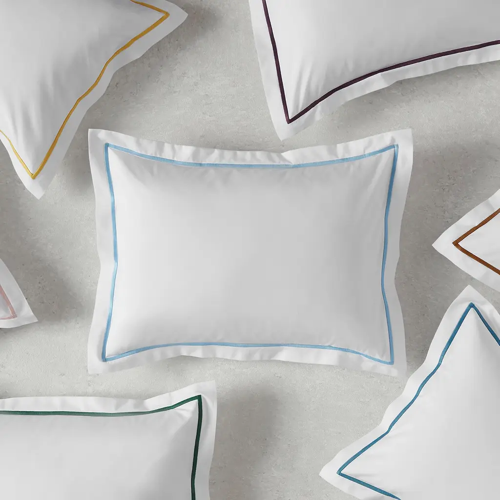 Woven it Italy, Matouk's Bergamo Bedding Collection is a phenomenal new percale, the silkiest and lightest in Matouk's collection. Featuring extra-long staple 100% Giza Egyptian cotton yarns, this 500-thread count bedding is finished with a unique process that creates a smooth and heavenly feel while still maintaining the crispness of percale. Matouk's Fall River factory completes the sheeting with a thick satin stitch and broad flange.