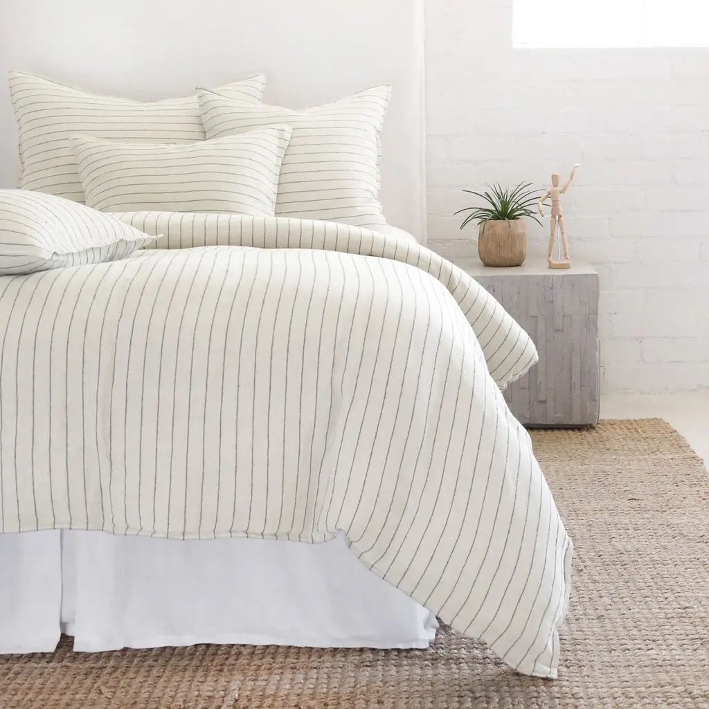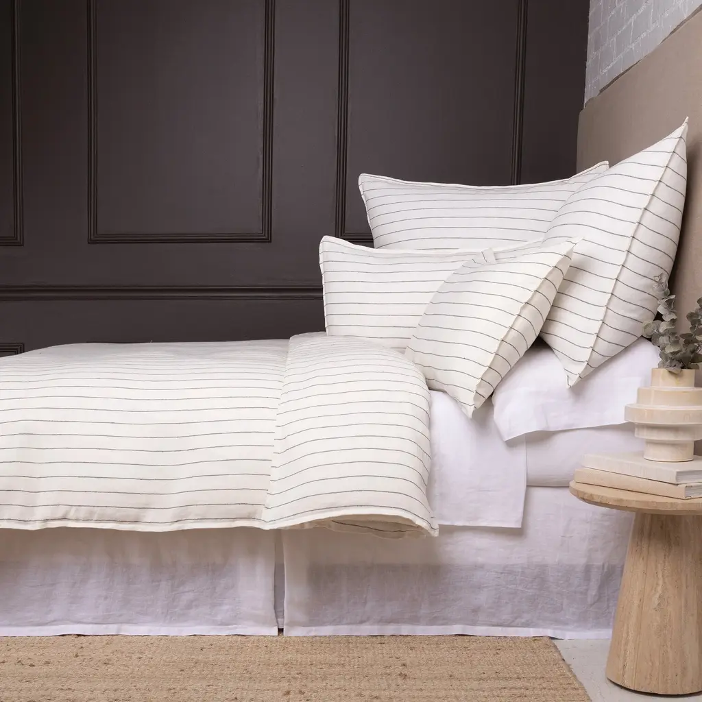 Introduce timeless sophistication into your bedroom with the Blake Sham from Pom Pom At Home. The interwoven stripe texture adds a modern twist to a traditional stripe design, while the hand-loomed linen is washed for a relaxed, lived-in look. Elevate your space into a tasteful retreat with the understated elegance of the Blake Collection. Highlights