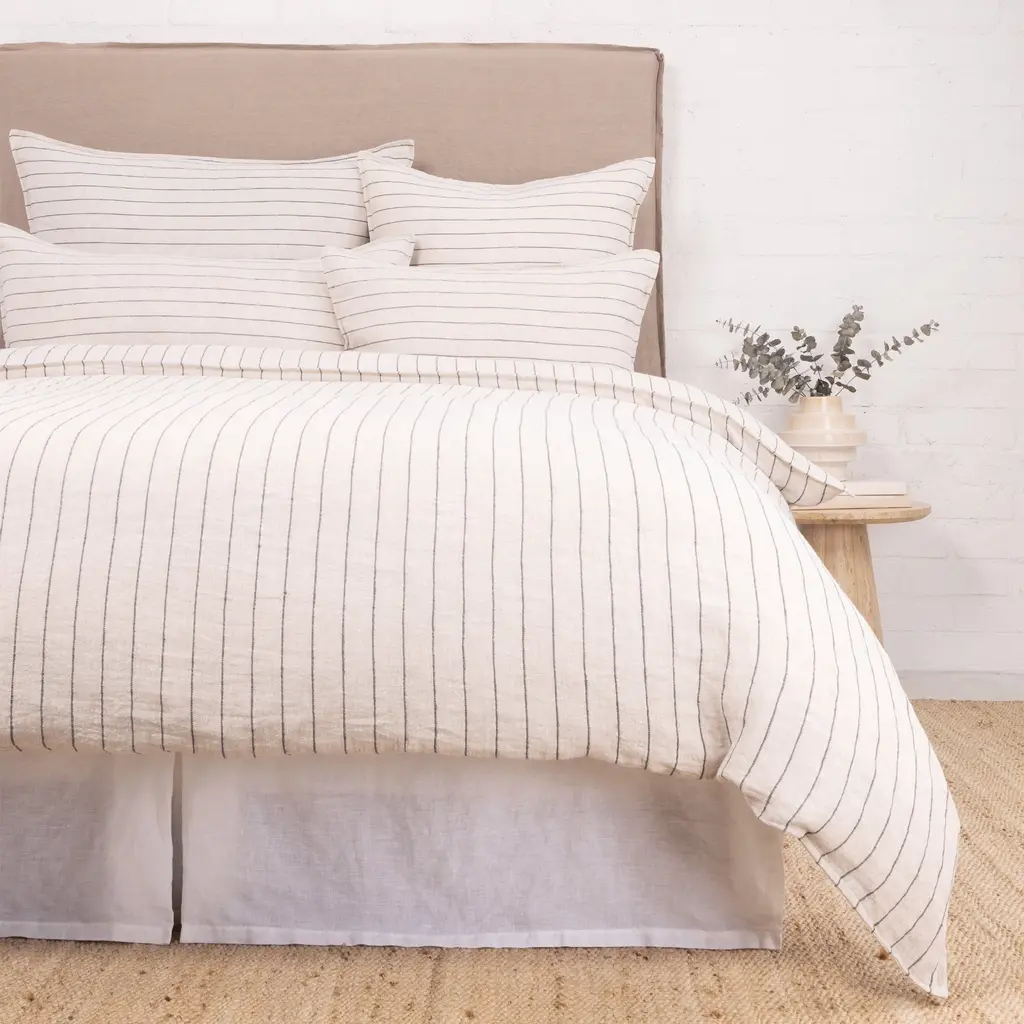 Introduce timeless sophistication into your bedroom with the Blake Sham from Pom Pom At Home. The interwoven stripe texture adds a modern twist to a traditional stripe design, while the hand-loomed linen is washed for a relaxed, lived-in look. Elevate your space into a tasteful retreat with the understated elegance of the Blake Collection. Highlights