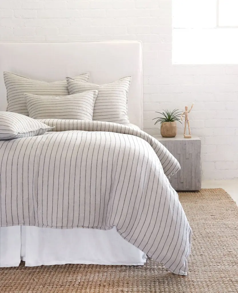 Hand-loomed from sustainably sourced flax, this linen sham features a smart interwoven stripe. The fabric's been washed for maximum softness. Button closure. Insert not included.