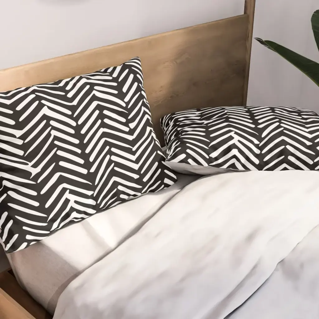 Boho, Herringbone, Geometric Art, Black And White Pillow Sham