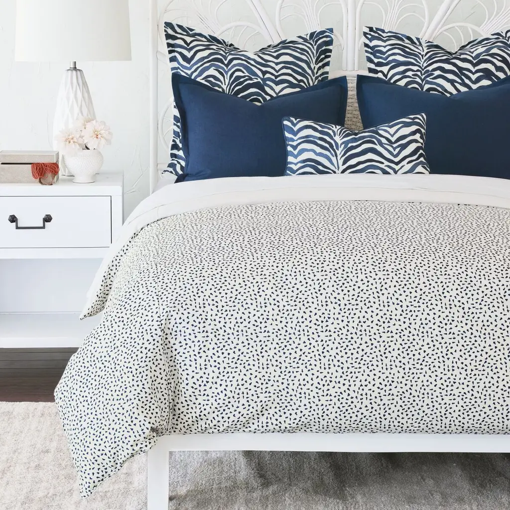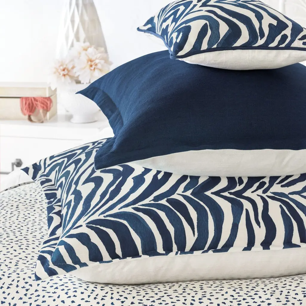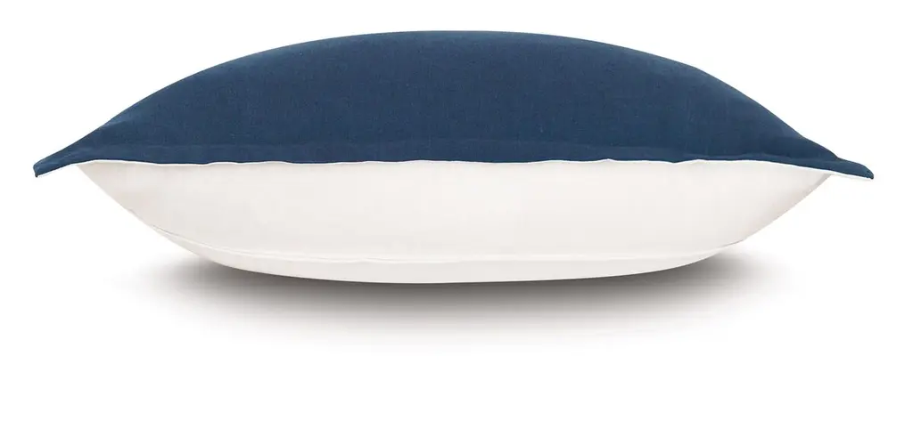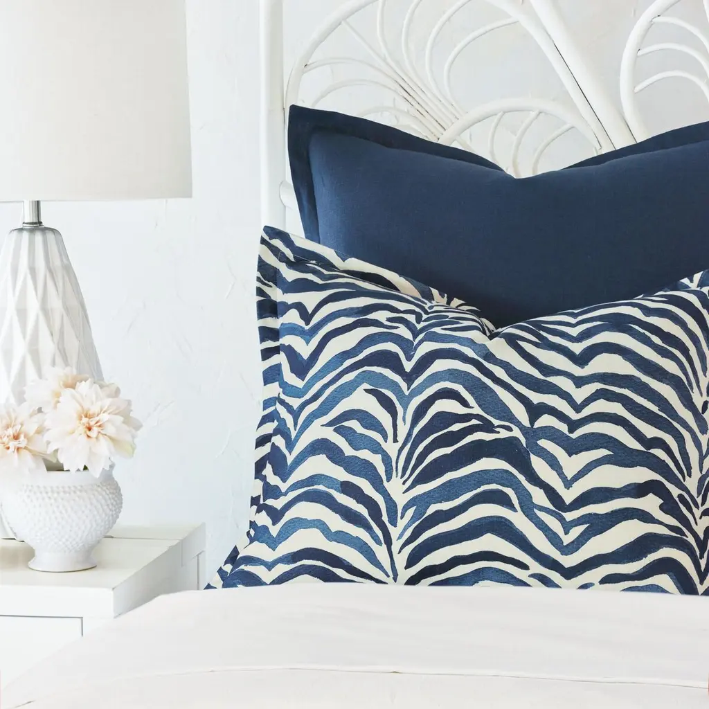 Exclusive to One Kings Lane: The front of this pillow sham is indigo linen, while the reverse is white cotton, making this ideal for bringing coastal charm to your bedroom. The one-inch flange is a tailored finishing touch. The feather insert ensures that the sham feels as luxurious as it looks.