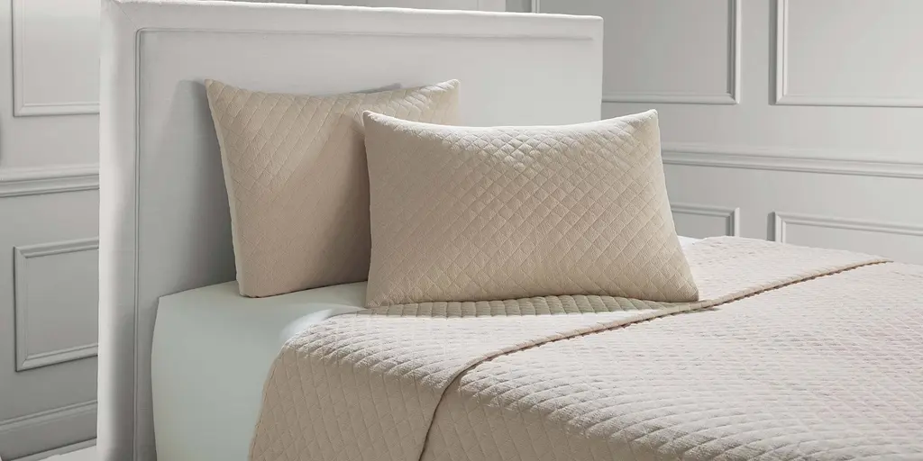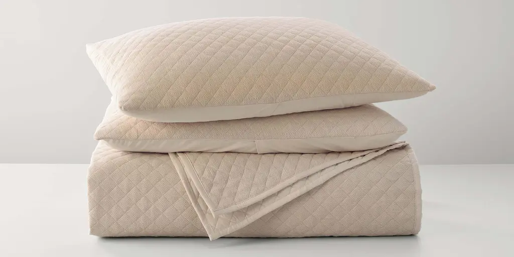This classic cotton quilt is the perfect basic for any bed set or use as a cozy layering piece. The diamond quilted patterning is classic yet updated and adds additional visual interest to the already textured weave. Piping around the edge finishes this set.