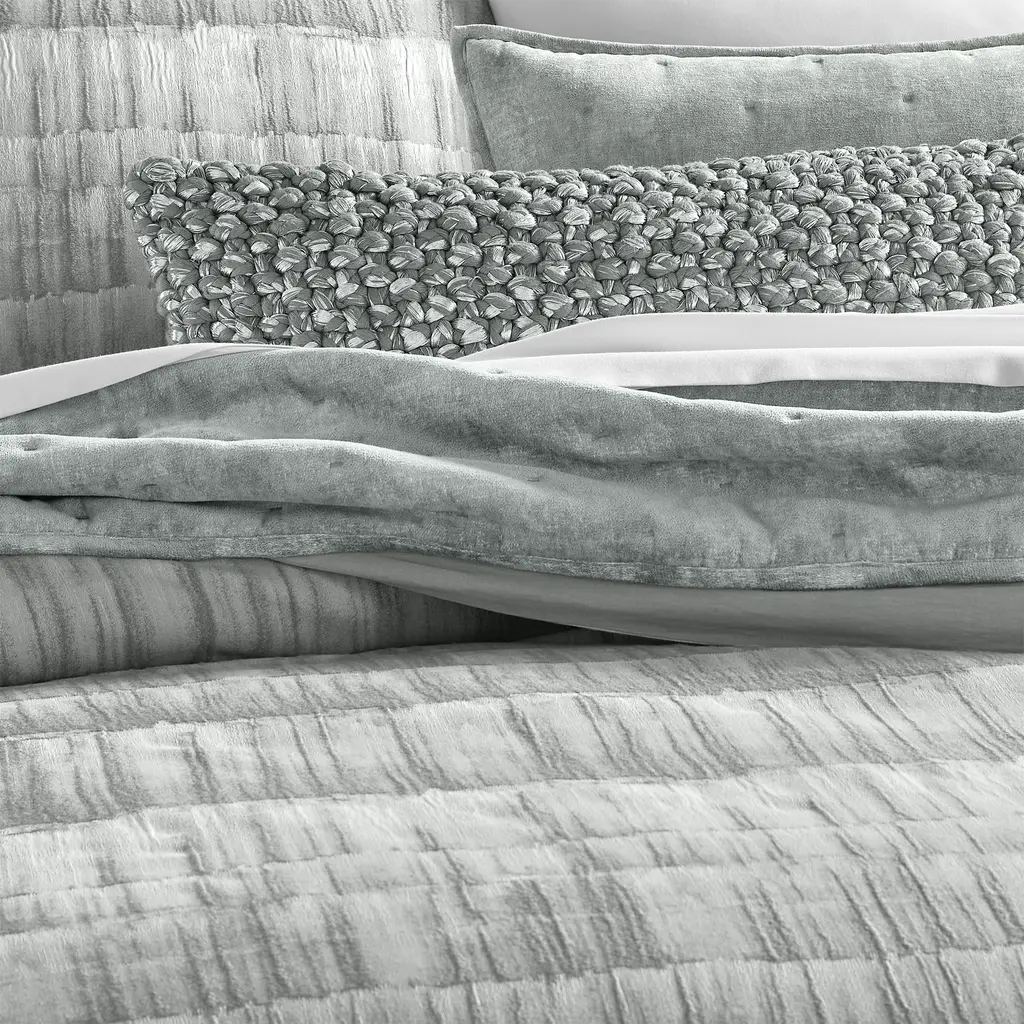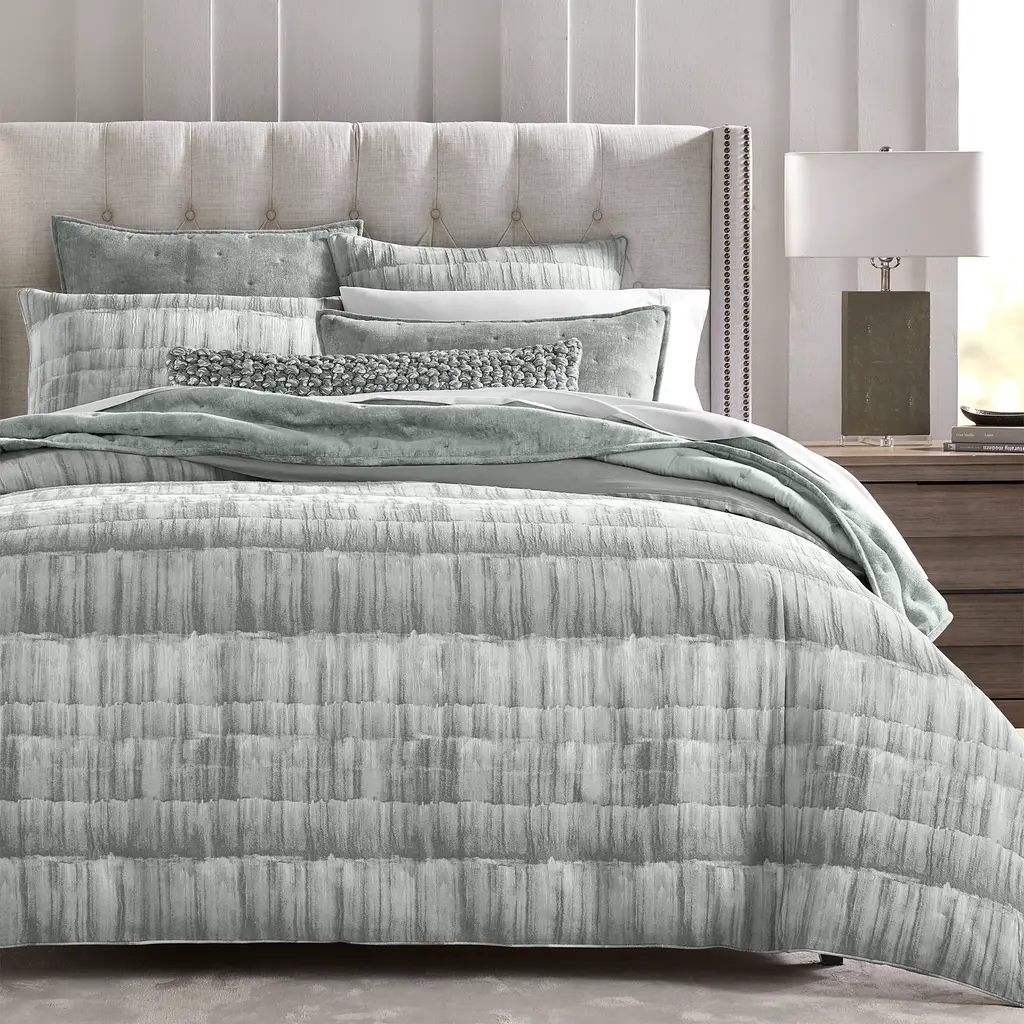Inspired by organic rock scapes, the pattern if the Brushed Texture Stripe Bedding Collection from Hudson Park Collection is minimal modern and abstracted. This collection bridges a minimalist style with modern sophistication. In soothing tones of gray it is perfect for the elevated master bedroom.