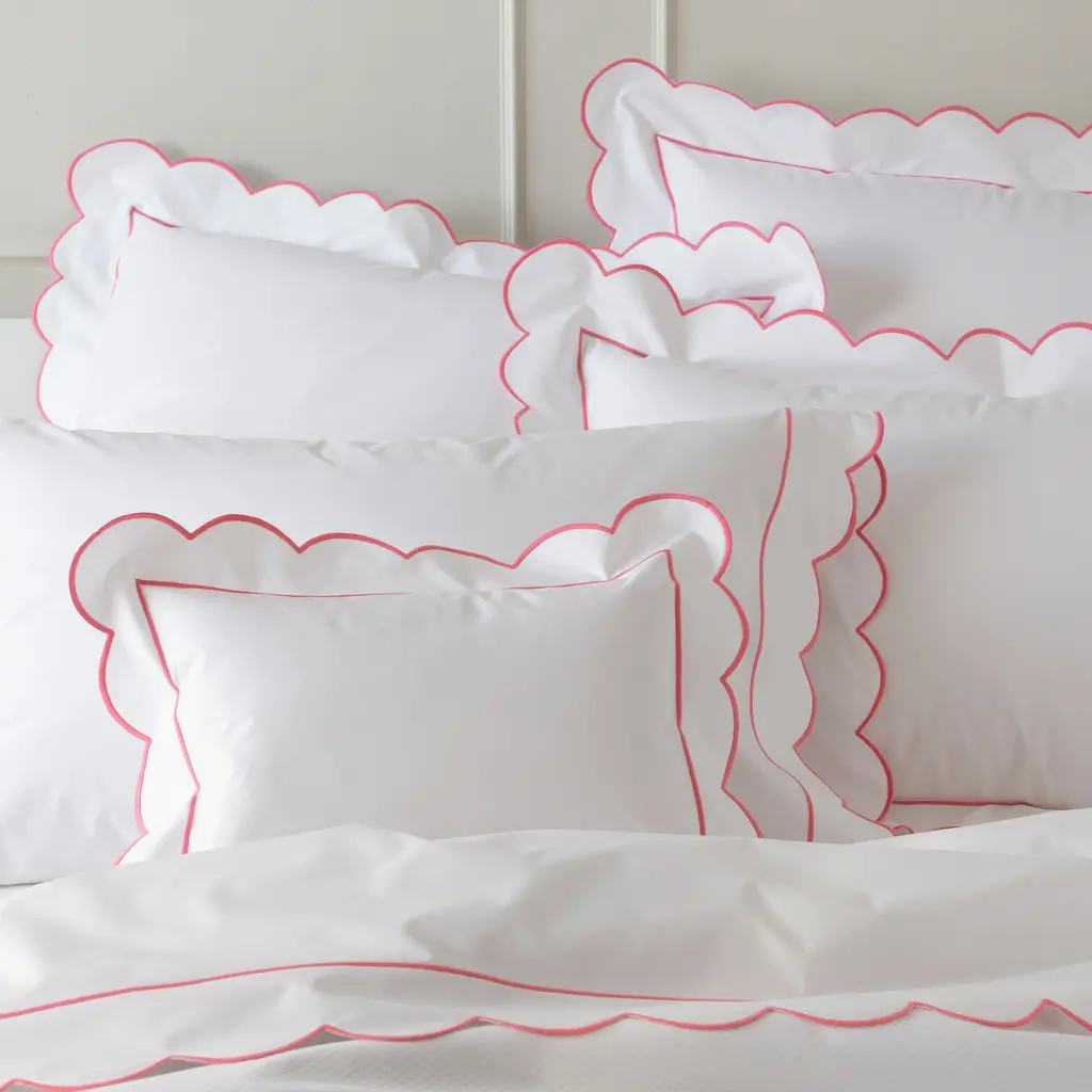Crafted in crisp cotton percale, this sham from the Butterfield collection by Matouk features sweet scalloped trim with tailored contrast satin stitching.