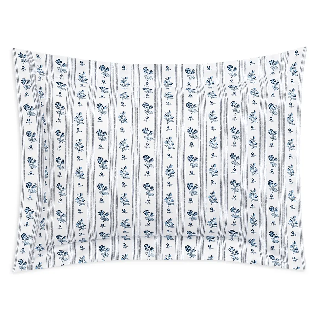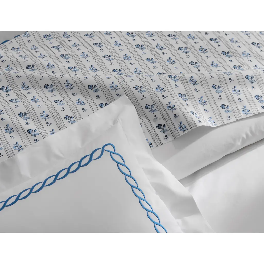 Cabanon Stripe is a Matouk Schumacher print with delicate stripes and small-scale florals that evoke a French Provincial sensibility. Crafted on crisp percale, its clean finish and refined detailing bring an airy elegance to any bed design.