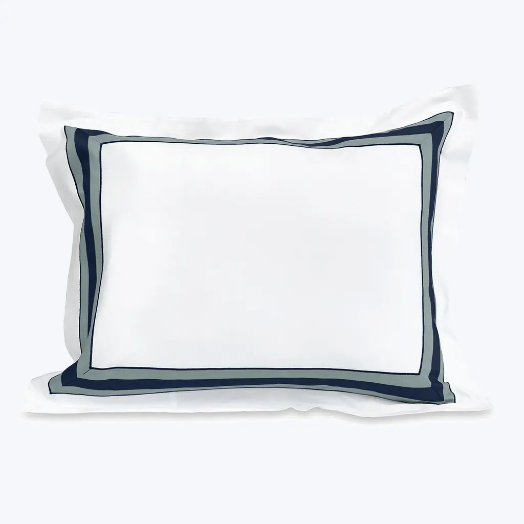 SFERRA's Casida bedding collection is minimal and modern, creating an impact with its contrast color border in sateen applique along one side, and solid sateen on the reverse for multiple ways to style.