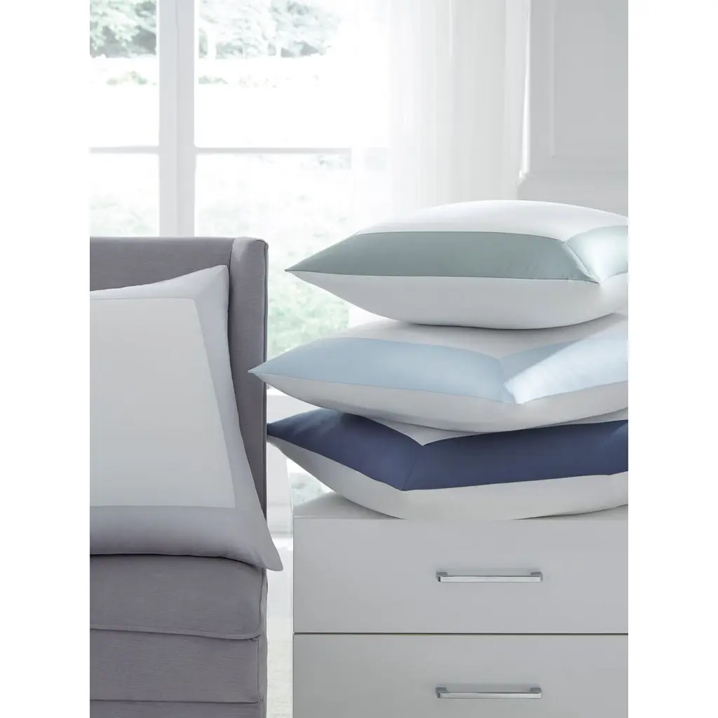 Made from smooth and crisp Italian-woven Egyptian cotton percale, this modern sham is designed with a border of contrasting Italian-woven Egyptian cotton sateen for a bold, graphic finishing touch.