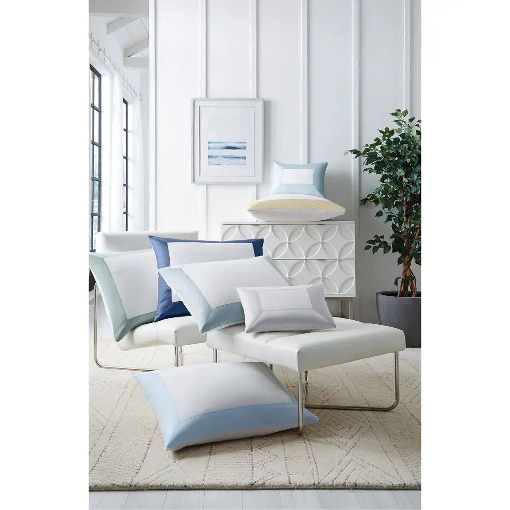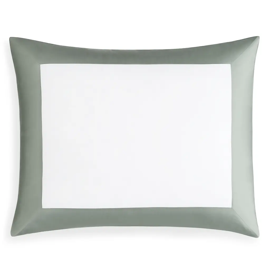 SFERRA's Casida bedding collection is minimal and modern, creating an impact with its contrast color border in sateen applique along one side, and solid sateen on the reverse for multiple ways to style.