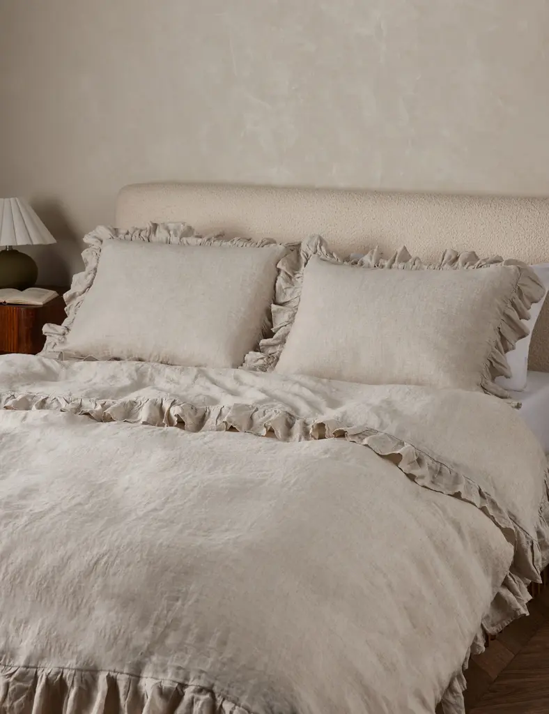 Pom Pom at Home offers superior linens and textiles made with the highest quality natural fibers for that relaxed, lived-in feel. This all-linen pillow sham features a generous 4" ruffle for comfort and charm in equal measureshell button closures complete the look. Mix and match with other linen bedding for a cozy, layered bed set.