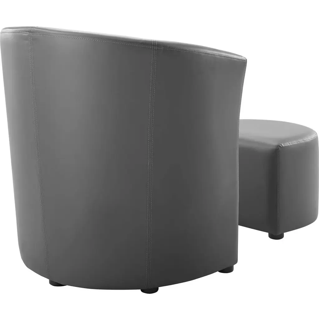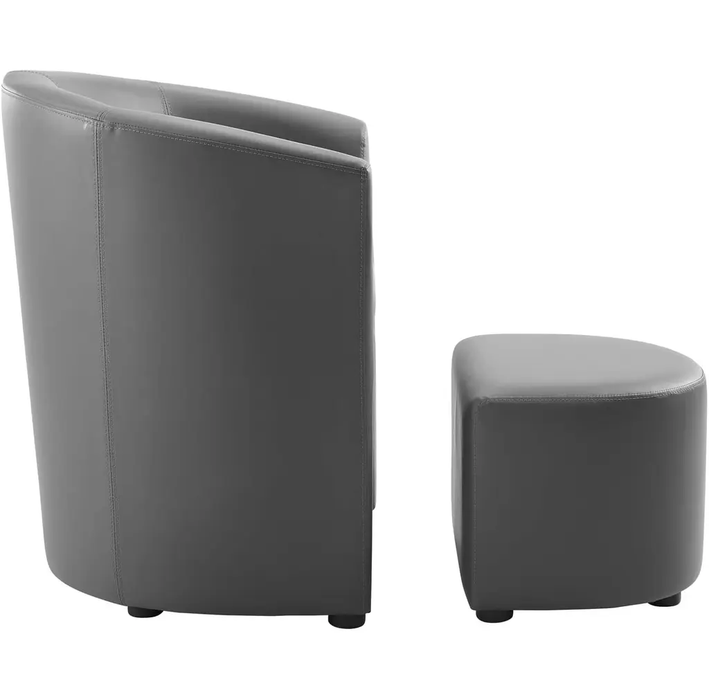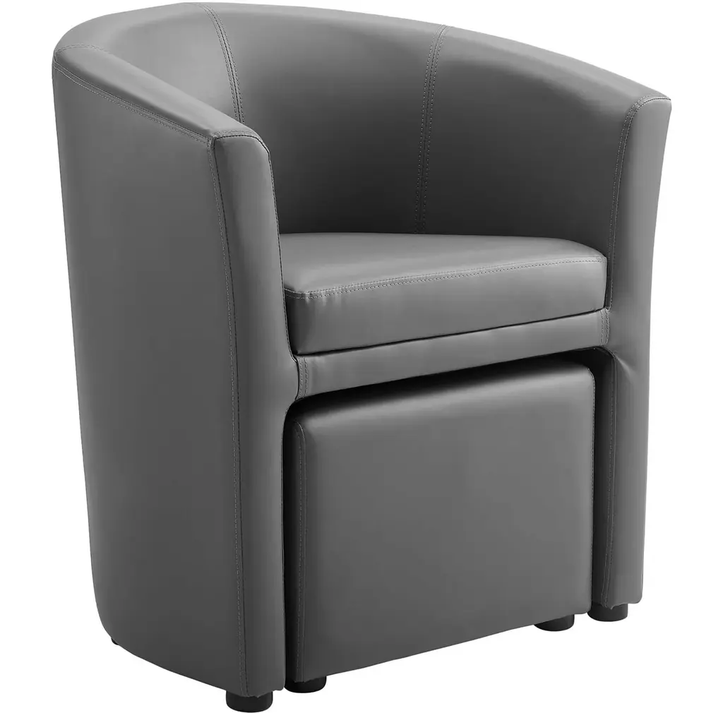 The Chesham Armchair and Ottoman from Evans & Londeen would be a great contemporary addition to your home. The design of this contemporary piece makes it a statement piece for years to come. The quality paired with the premium finish makes for a quality piece of furniture.Modern Arm ChairFoam Padded Faux LeatherTuck Away Self-Storage OttomanWooden Frame, Foot CapsWeight Capacity - 330 LbsSeat Height: 3