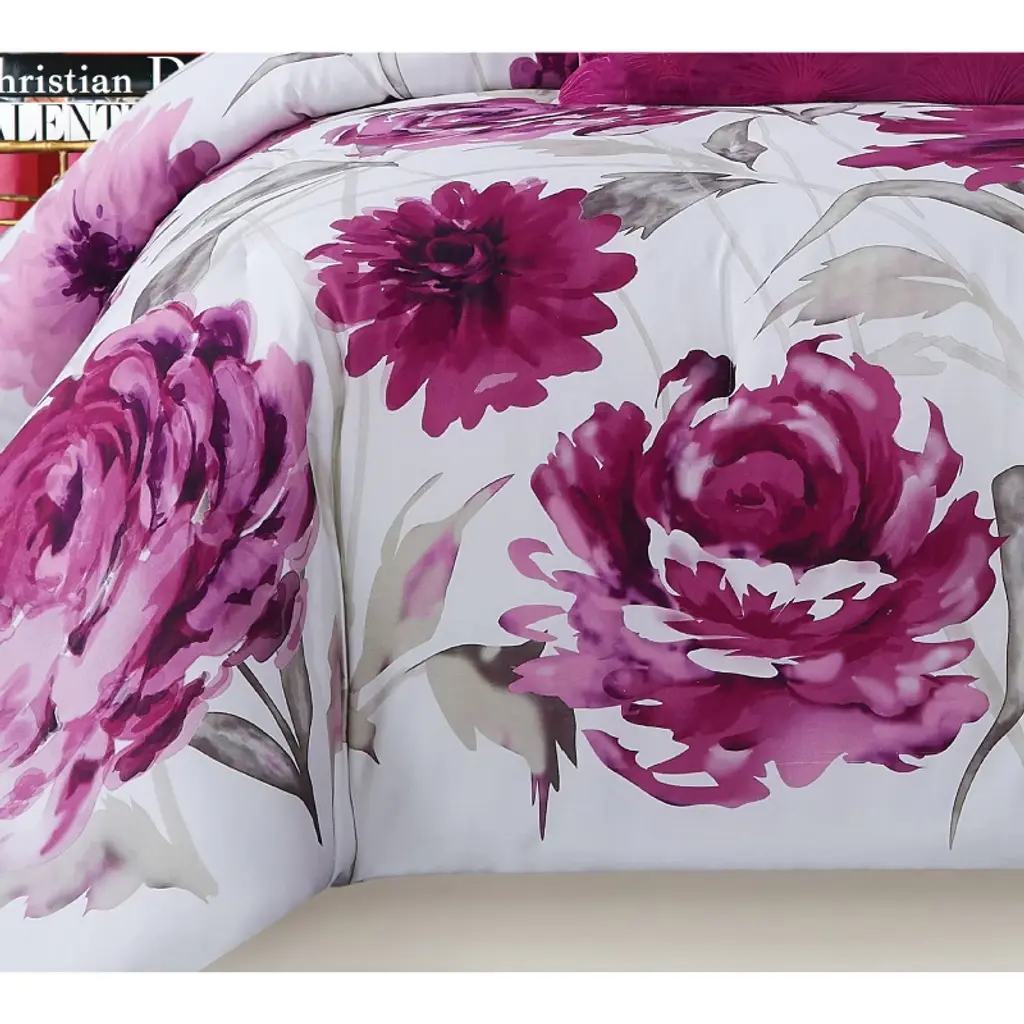 Christian Siriano Twin Xl 2Pc Remy Floral Comforter Set Magenta/white: Microfiber Bedding With Sham