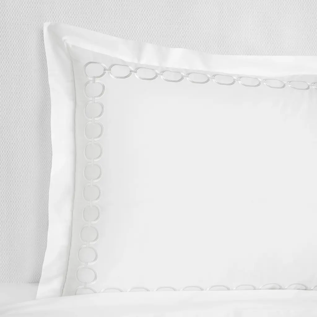 The Classic Chain collection offers an updated take on an iconic Greek motif. Embroidered on crisp, 520-thread count Ceylon cotton percale, this time-honored design comes in an array of shades and exudes a quintessentially classic appeal. Pair Matouk's Classic Chain bed linens with the matching Ceylon fitted sheet.