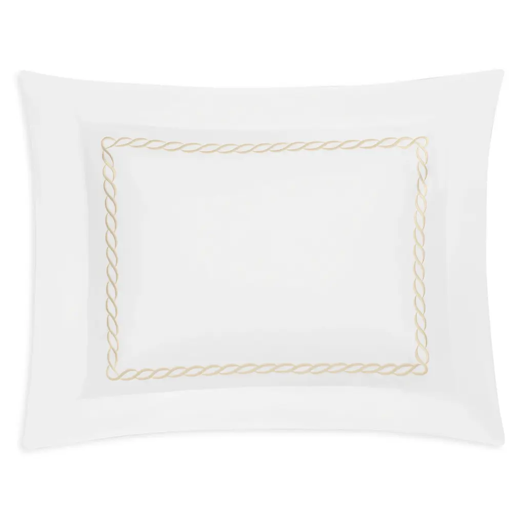 The Classic Chain collection offers an updated take on an iconic Greek motif. Embroidered on crisp, 520-thread count Ceylon cotton percale, this time-honored design comes in an array of shades and exudes a quintessentially classic appeal. Pair Matouk's Classic Chain bed linens with the matching Ceylon fitted sheet.