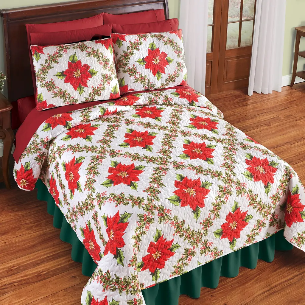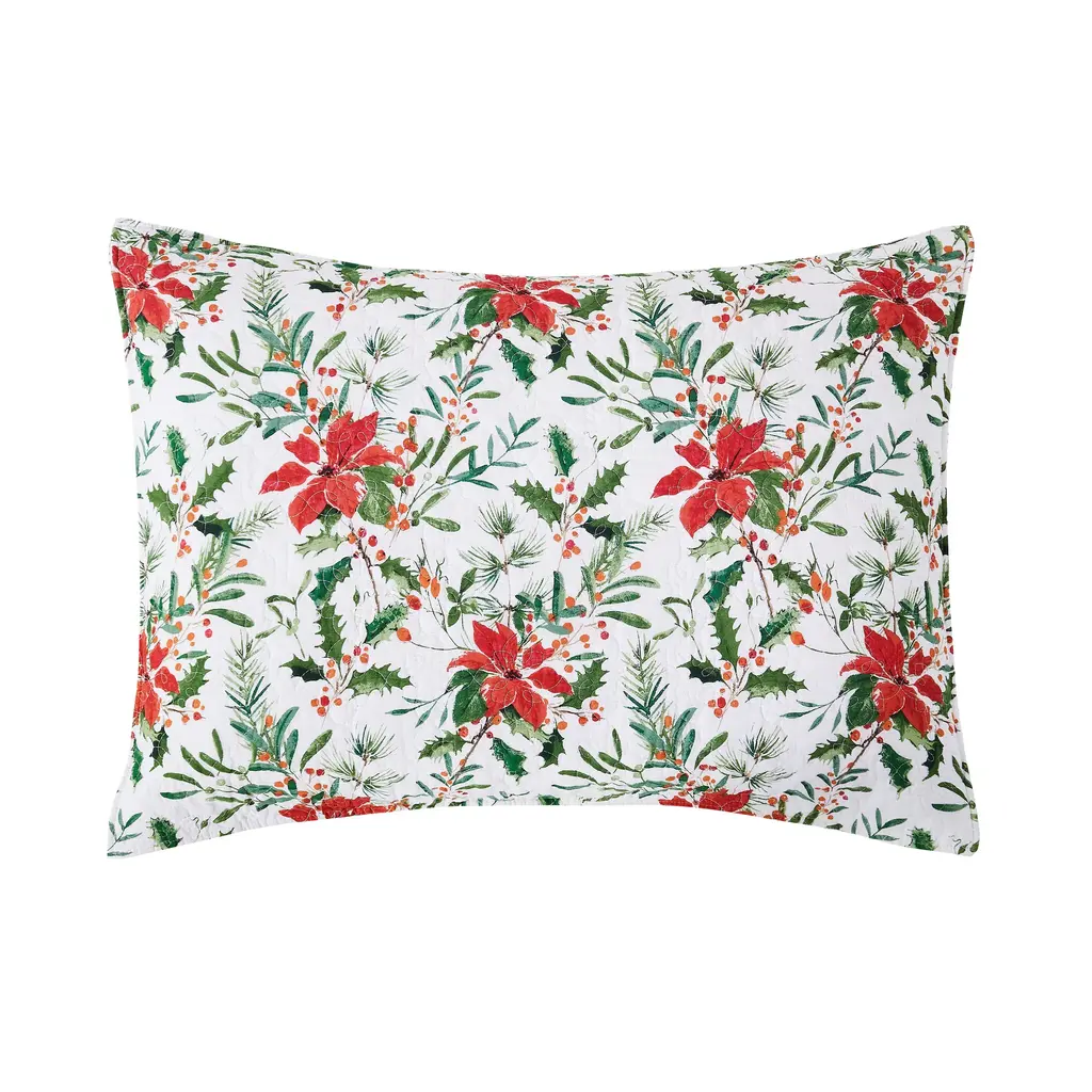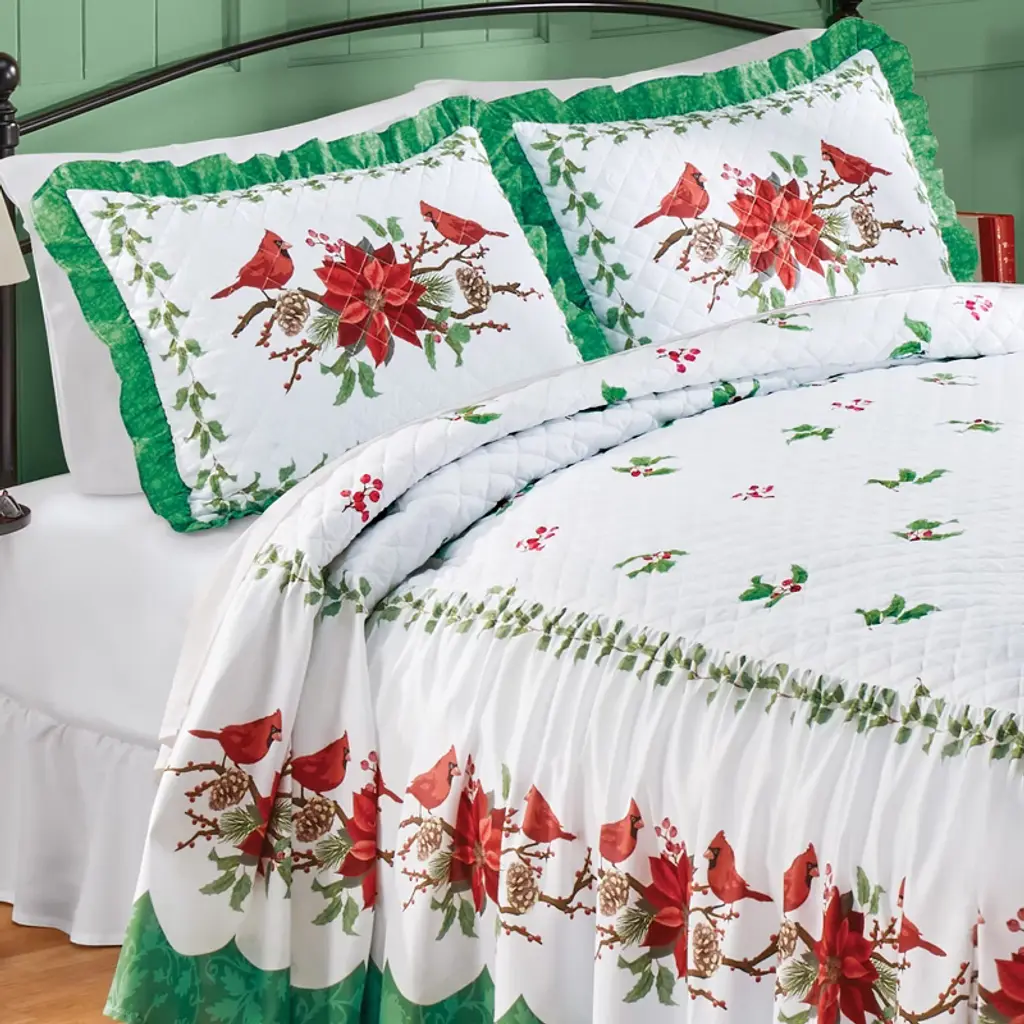 Collections Etc Cardinal Holly Festive Ruffled Edge Pillow Sham Set Sham Gender Neutral Multi