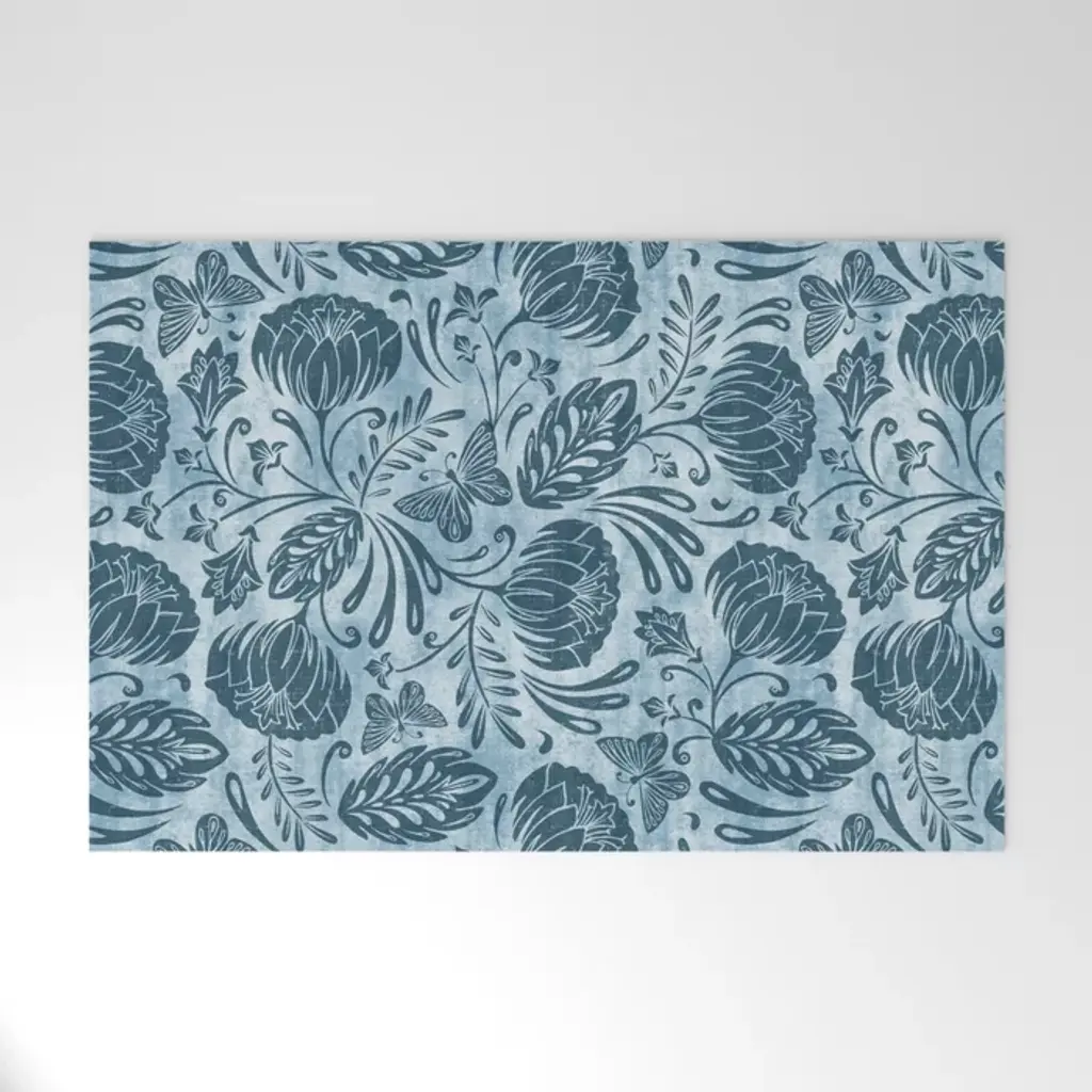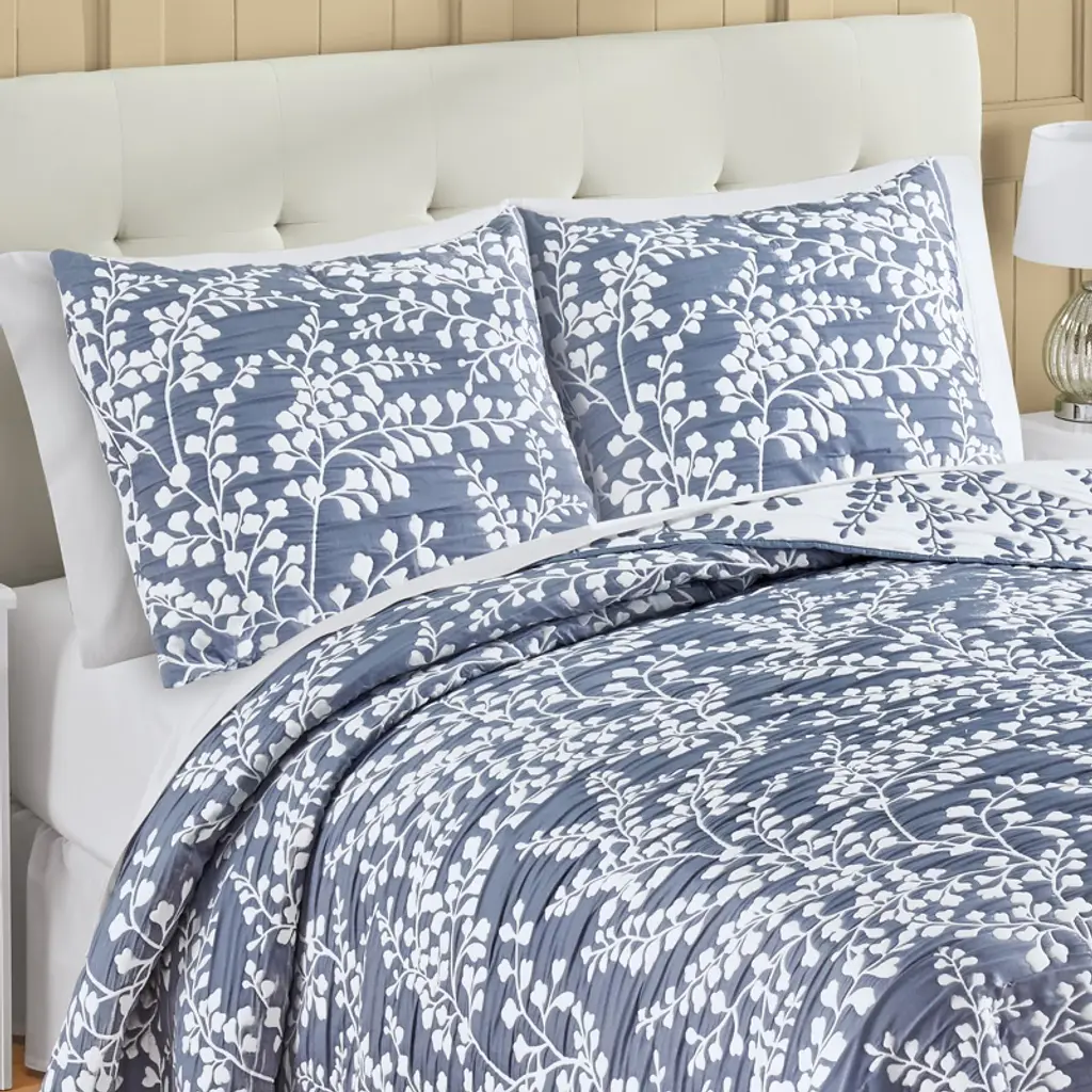 Collections Etc Jacquard Textured Leaf Design Pillow Sham Sham Gender Neutral Navy