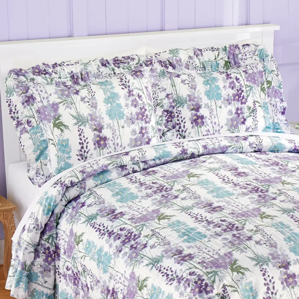 Collections Etc Jenni Floral Lightweight Plissé Ruffled Edge Pillow Sham Gender Neutral Purple