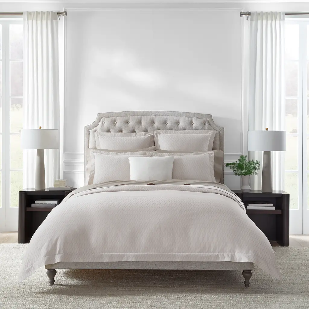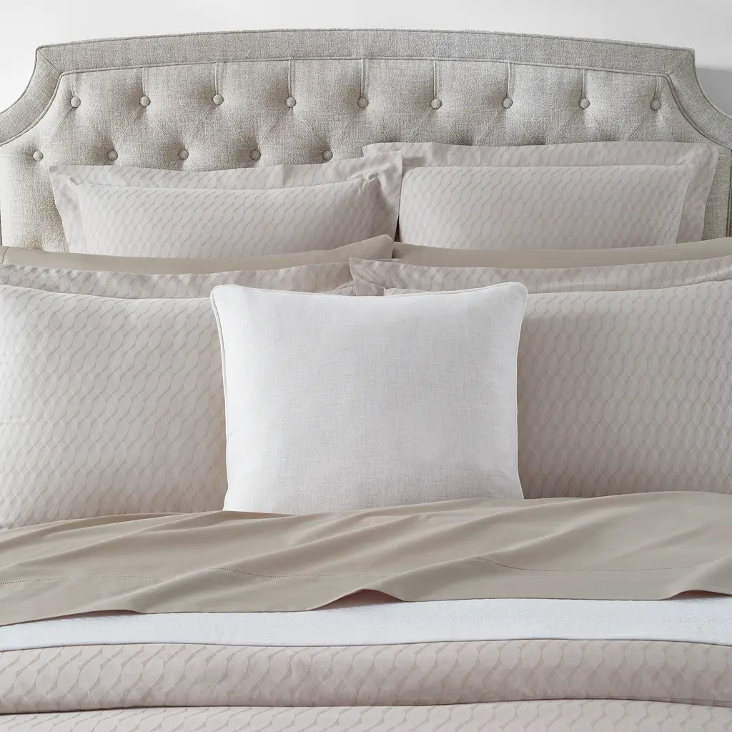 Bring the essence of a tropical retreat to your room with SFERRA's Cosima Collection. The sateen bedding is woven from Italian long-staple cotton jacquard, with an elegant design of cascading, wave-like patterns in soothing tones. The result is serene sophistication.